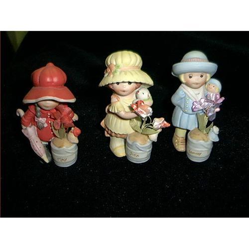 3 Porcelain Dolls by "APPLAUSE". These are three really beautiful porcelain dolls, and all have names on them. One is February, and one is May, and the other one is June. All in perfect condition and signed "Applause" by Wallace Barry Co. 1984. They are 3 1/2" H X 2" W. Very colorful and in perfect condition. Hope you like them. PRICED TO SELL