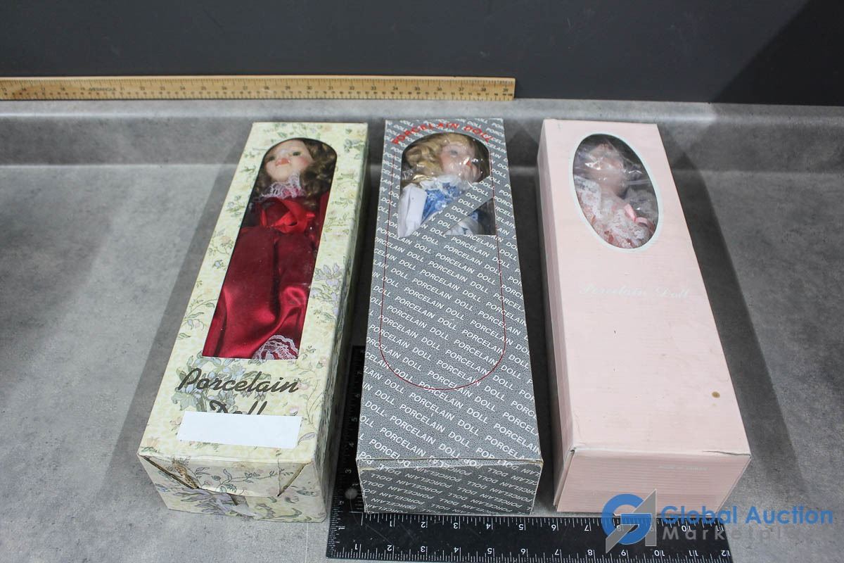 (3) Porcelain Dolls in Box