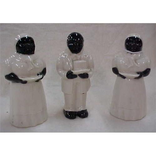 <table width="100%" border="0" cellspacing="0" cellpadding="4"><tr><td><em> </em></td></tr><tr> <td width="100%"> Salt, Pepper and Bell Figurines. The salt is a man with a top hat. The pepper and bell are women. Bell is missing clapper inside. Picture does not show the great detail on faces. Buyer pays/shipping handling costs. </td></tr><tr> <td> </td></tr><tr> <td>Reference #: B327_1603</td></tr><tr><td>Condition:Good</td></tr><tr><td>Year:1930's</td></tr><tr><td>Country:USA</td></tr><tr><td>Height:4.50</td></tr><tr><td>Width:2.50</td></tr><tr><td>Title:3 Porcelain Salt, Pepper and Bell Figurines</td></tr><tr><td>Location:Hanover, Maryland</td></tr></table>