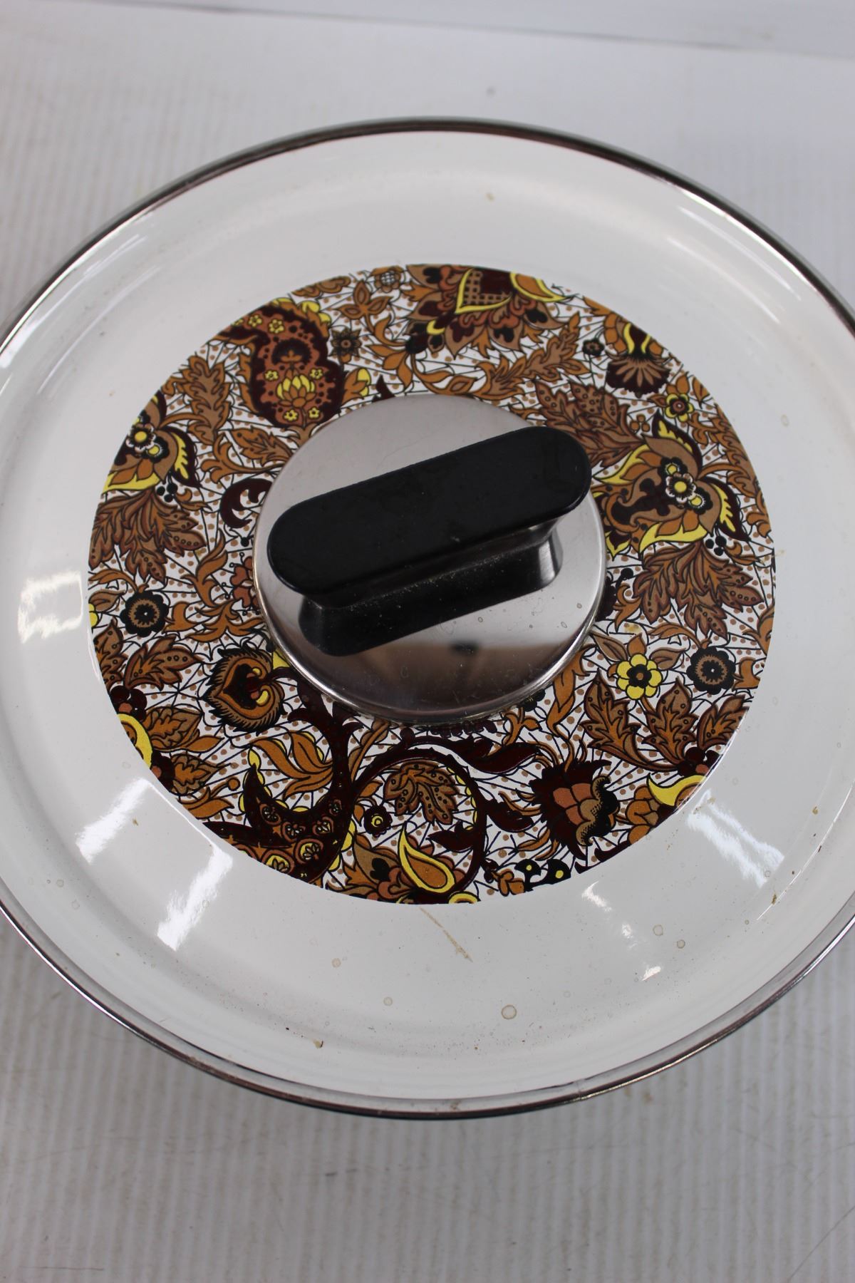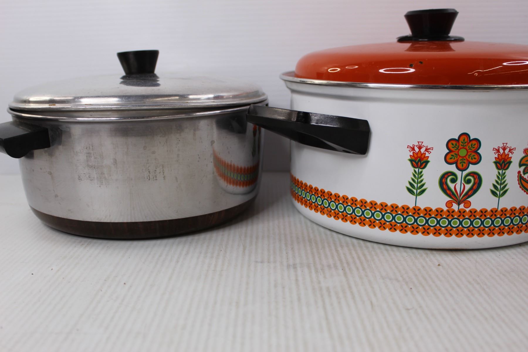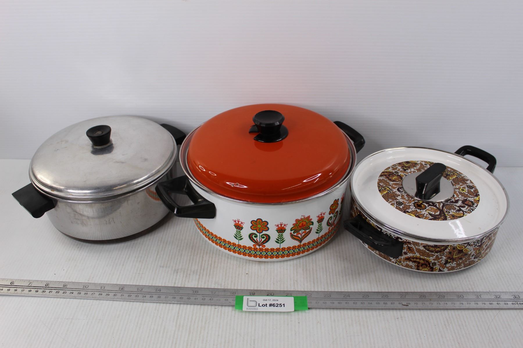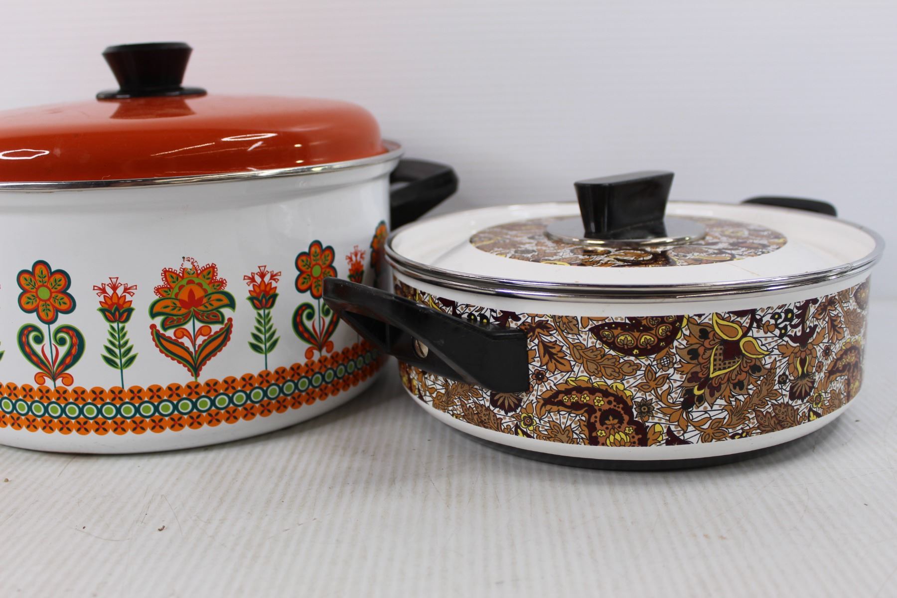 (3) Pots, Enamel Ware Stew Pots Autum Leaf Design