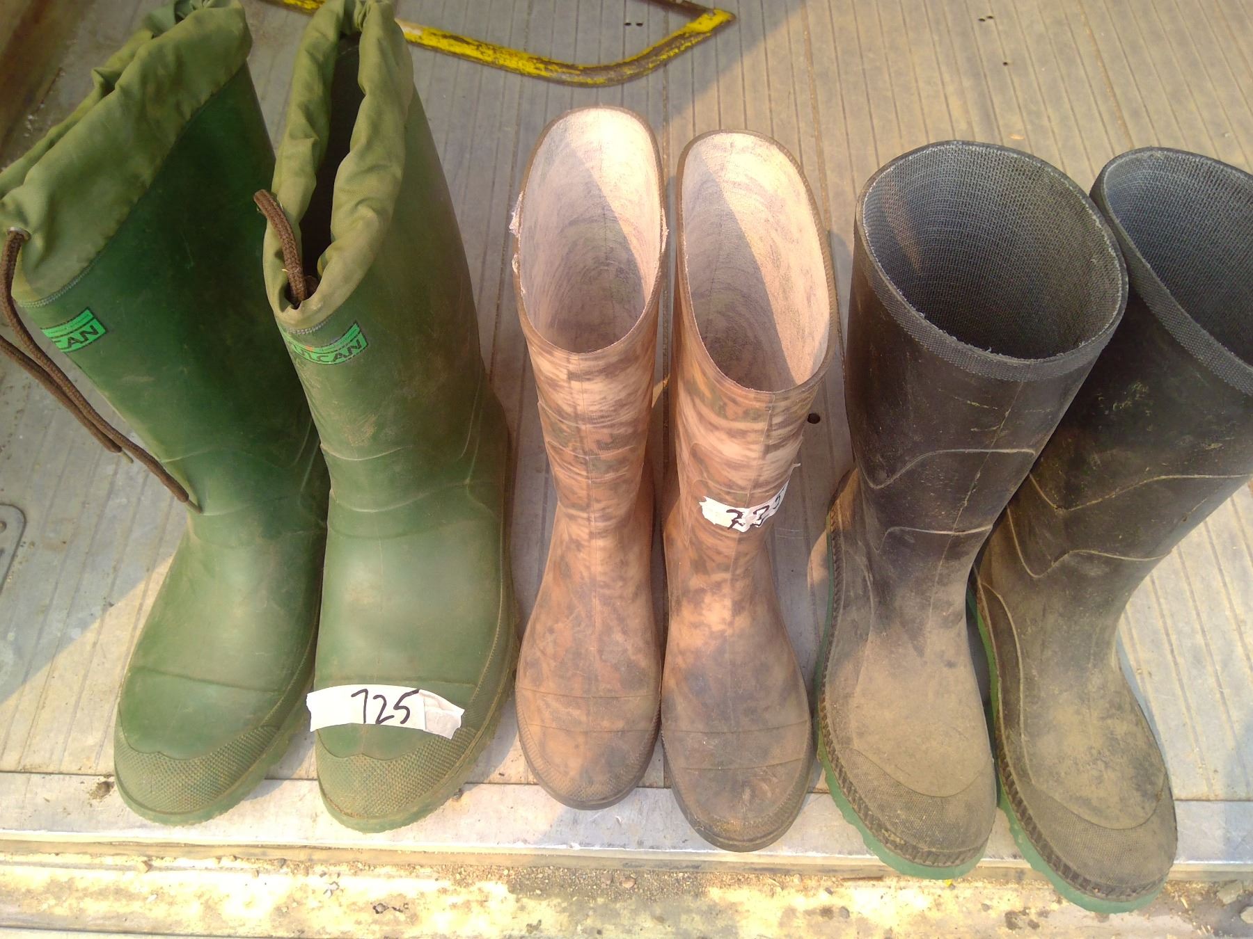 3 Pr rubber boots 2 sz 7, 1 sz 10