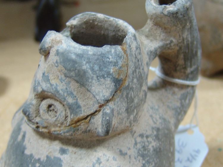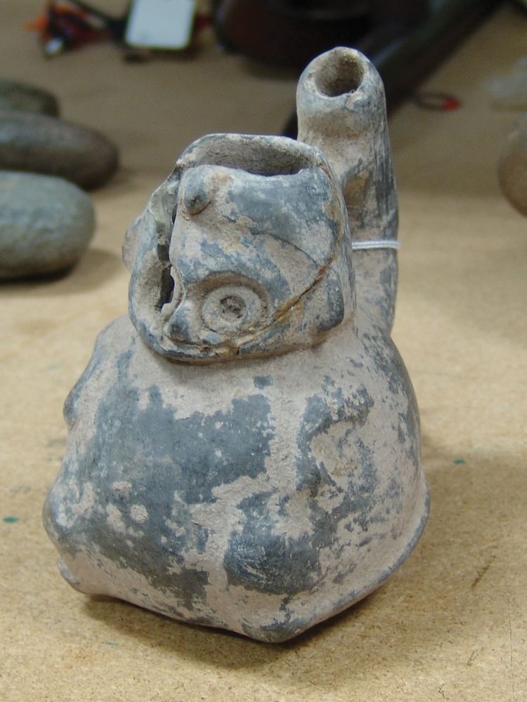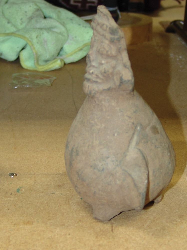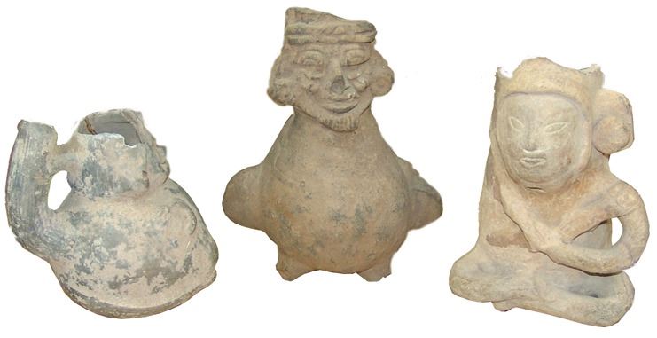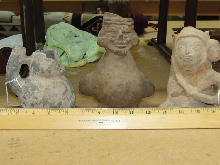 Group of three excavated cups/vessels all done in human form. Ex. Kunkle Collection from South Mexico. Good condition, as shown.,Pre Historic,Largest 7"