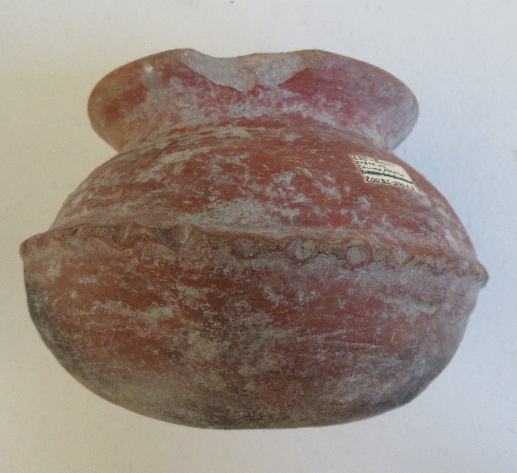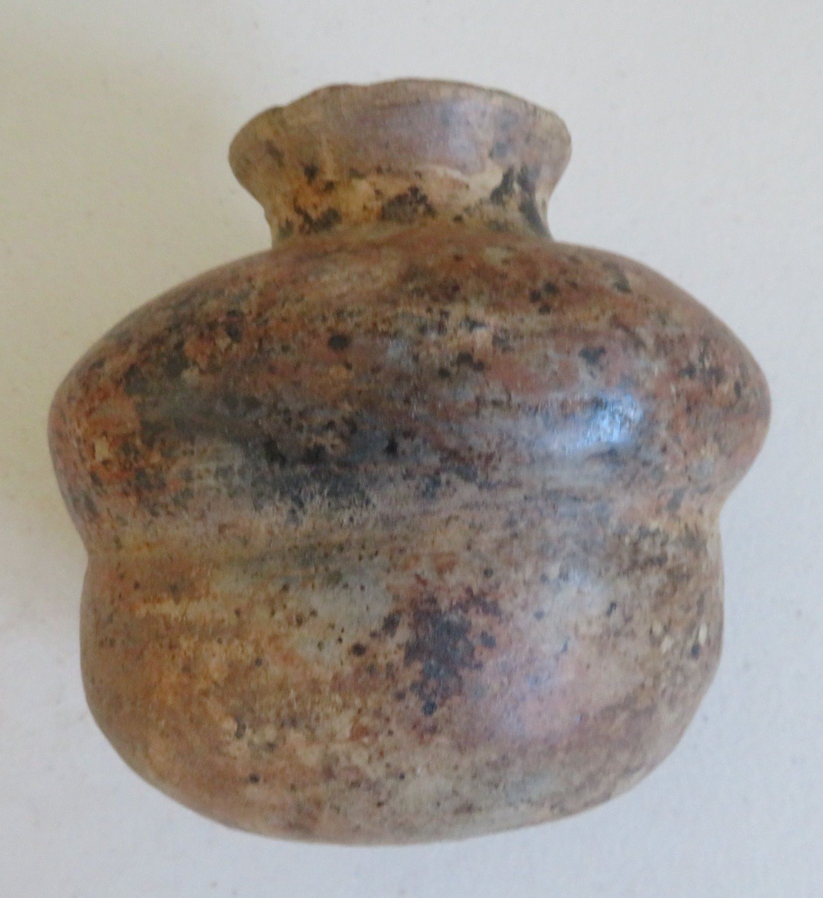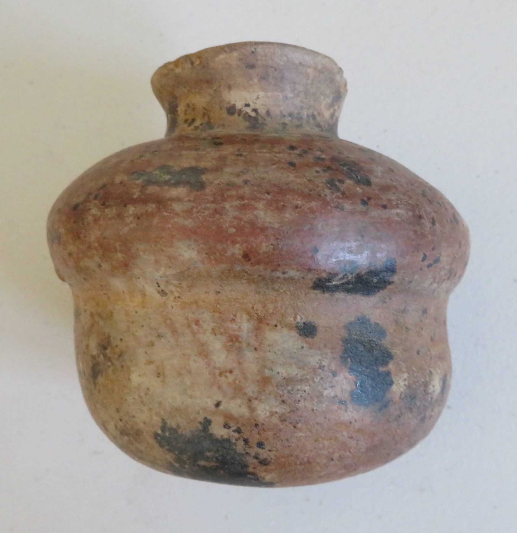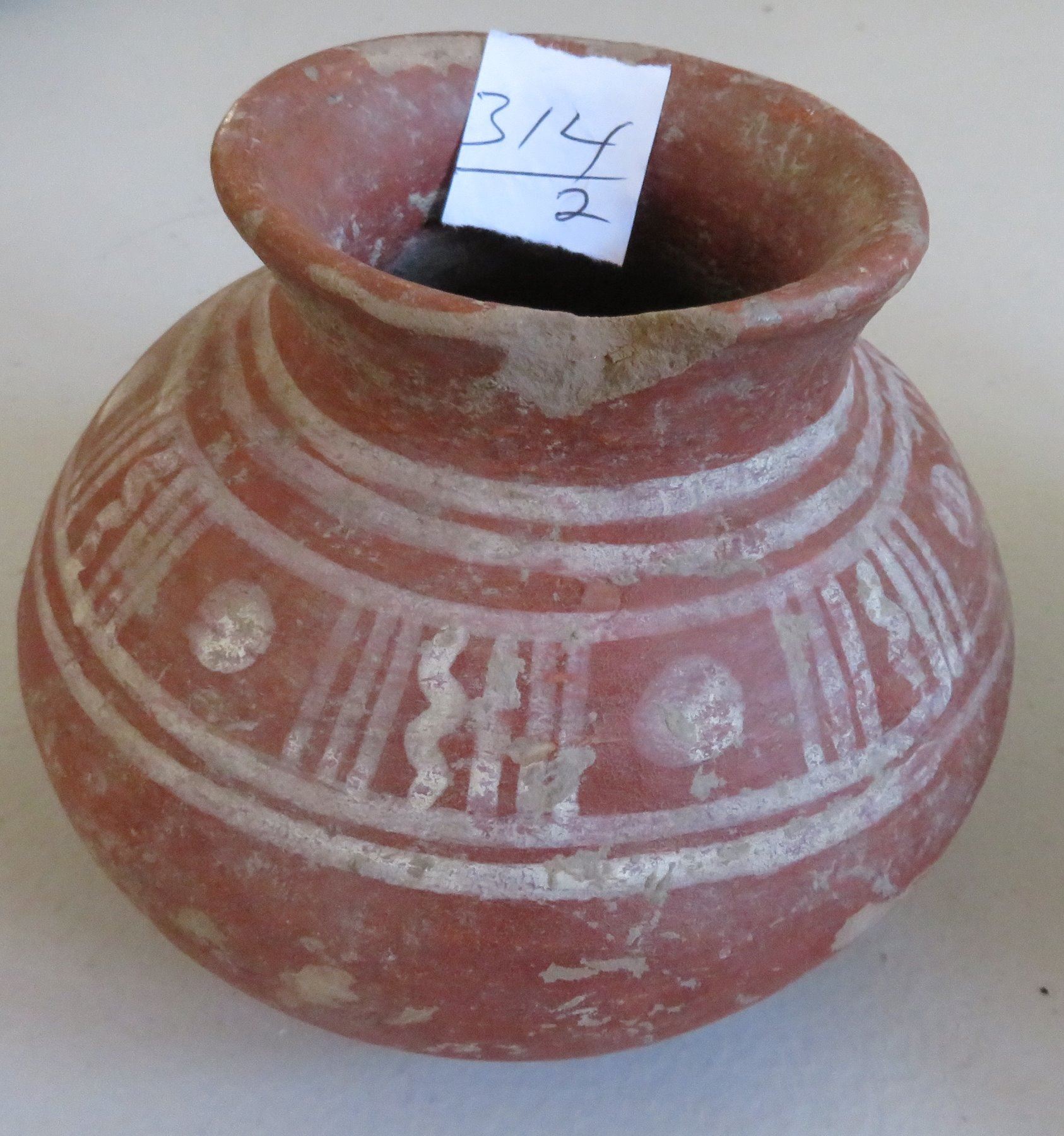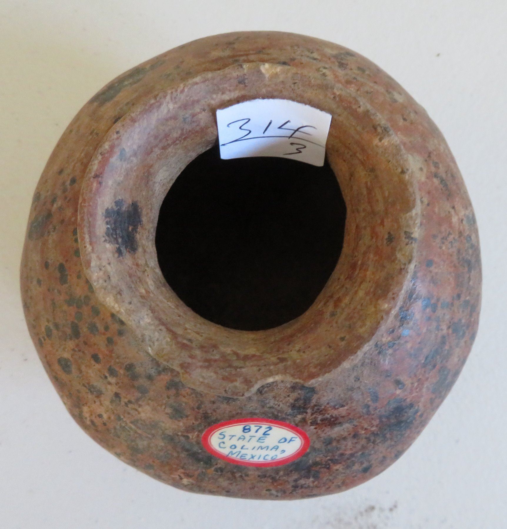3 Pre-Columbian Ollas, pre-Columbian items. Made of clay and paint, the largest item measures 6" x 5". Colima, Mexico. Condition: Minor nicks and scratches, see images. Shipping: $45.00 w/insurance and signature, double-boxed, due to value and size.