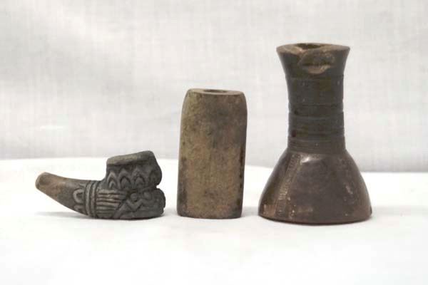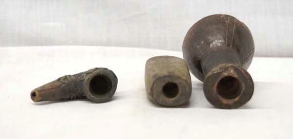 From the Eiserman Estate, we have 3 PreColumbian Pipes, includes 2 pottery and 1 stone, largest measures 2.5''L, Acquired in accordance with all State and Federal Regulations