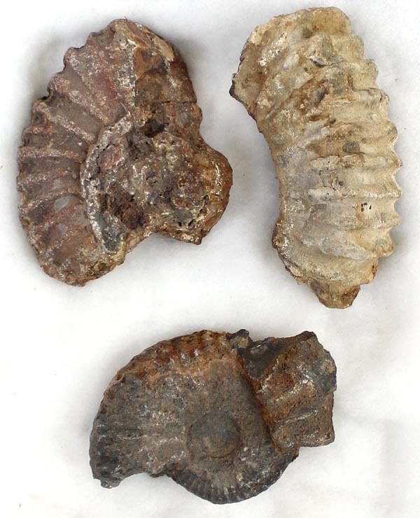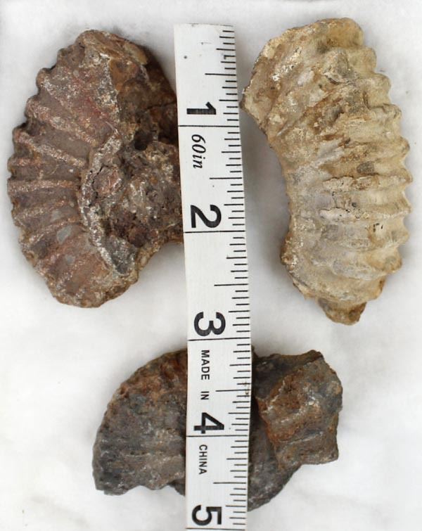 3 Prehistoric Stone Ammonite Remnants largest measures 3" x 3.5" x 1.5"