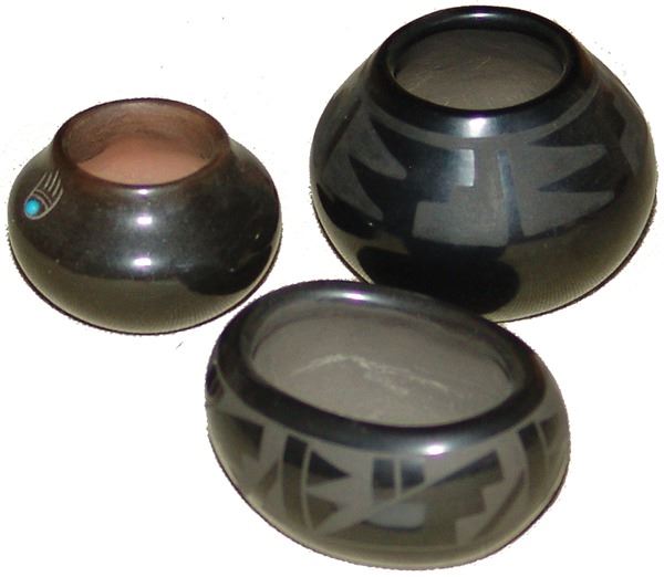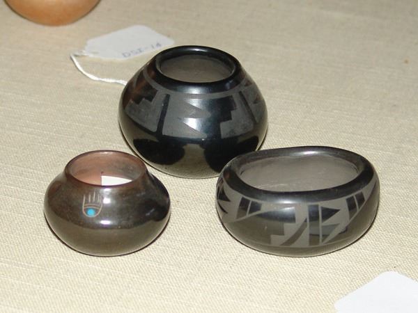 Mid/Late 1900s Largest 2" x 2-3/4" Includes an oval by Cresencia Tafoya, a larger olla by Margaret Lou Gutierrez, and a small, incised olla with bear paw by J. S. Gallegos. All very good condition.
