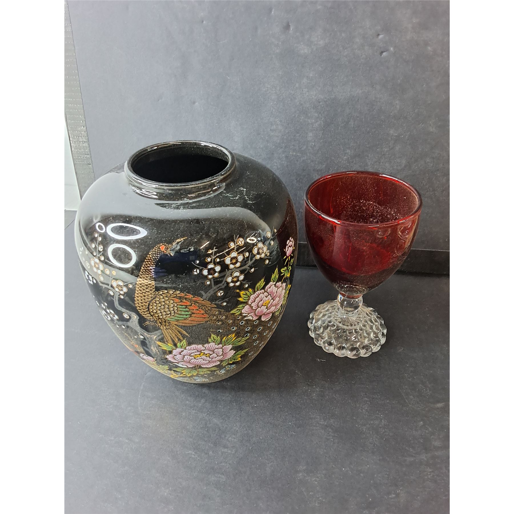 (3) Pyrex/Anchor Hocking Containers with Lids, Decorative Pot, Wine Glass