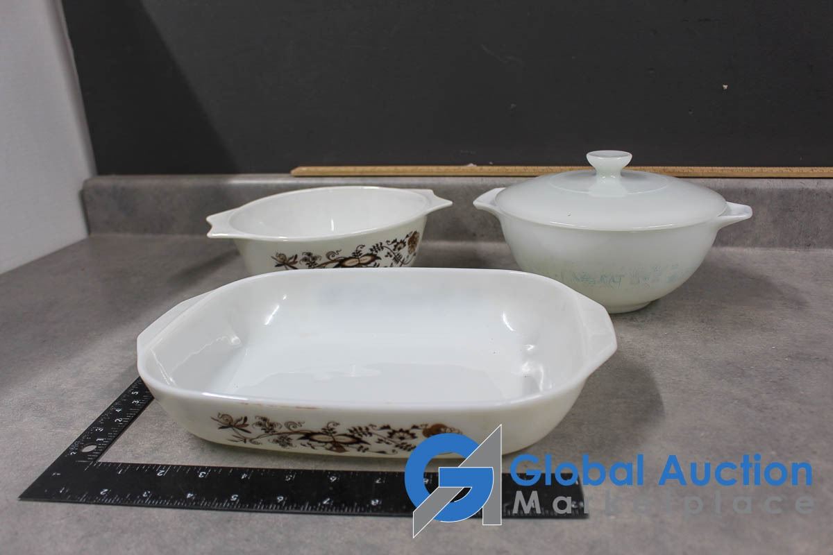 (3) Pyrex Dishes w/One Lid