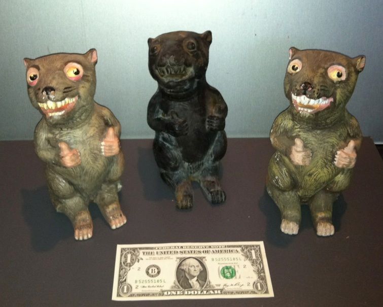 Offered here are 3 very cool sculptures of a rat. There are 2 nicely painted ones and one black casting. Great for use as display in your Haunt.