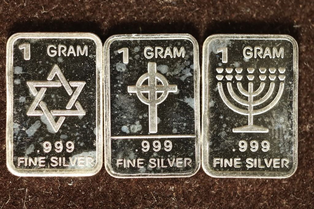 3 RELIGIOUS 1 GRAM .999 SILVER BARS TONING SPOTS