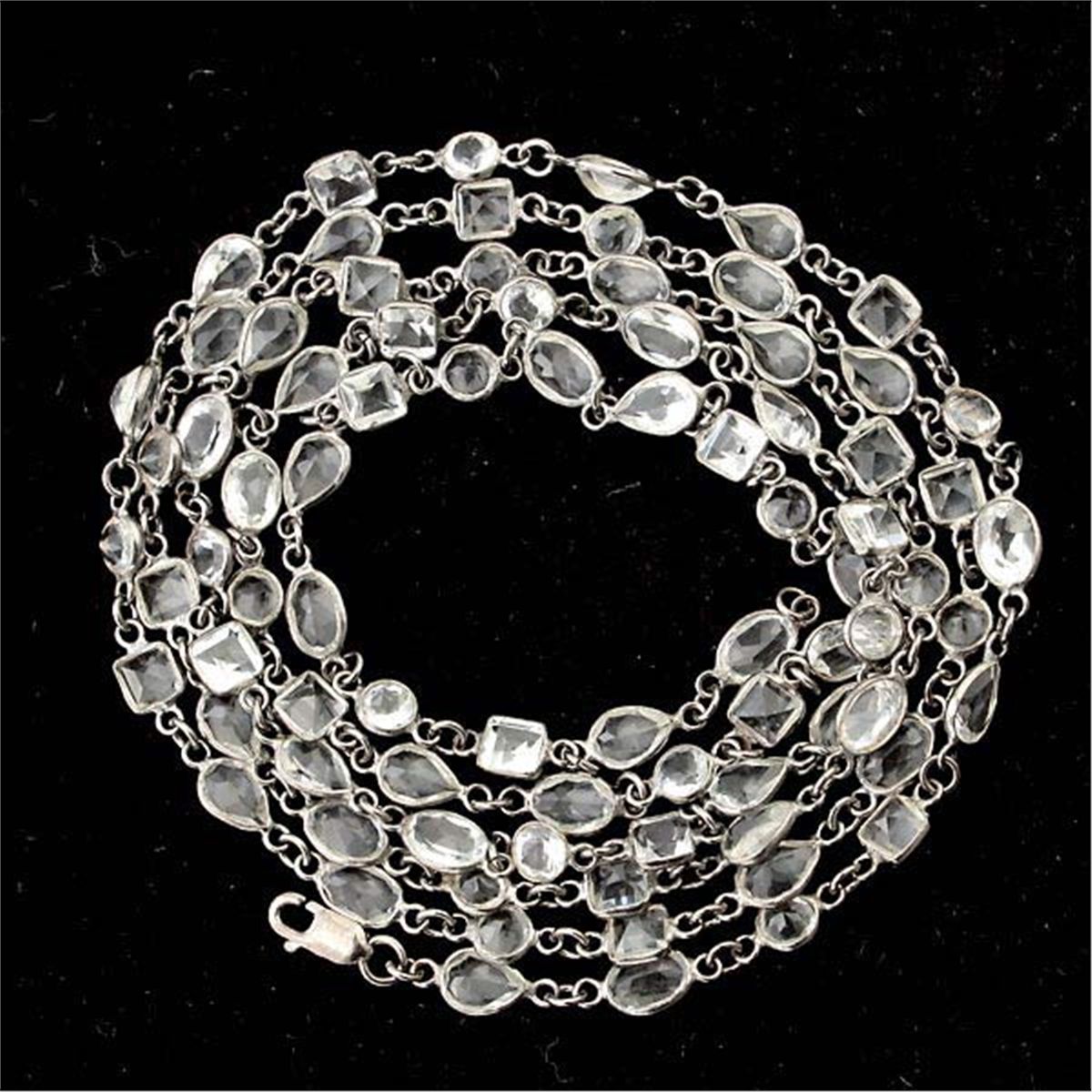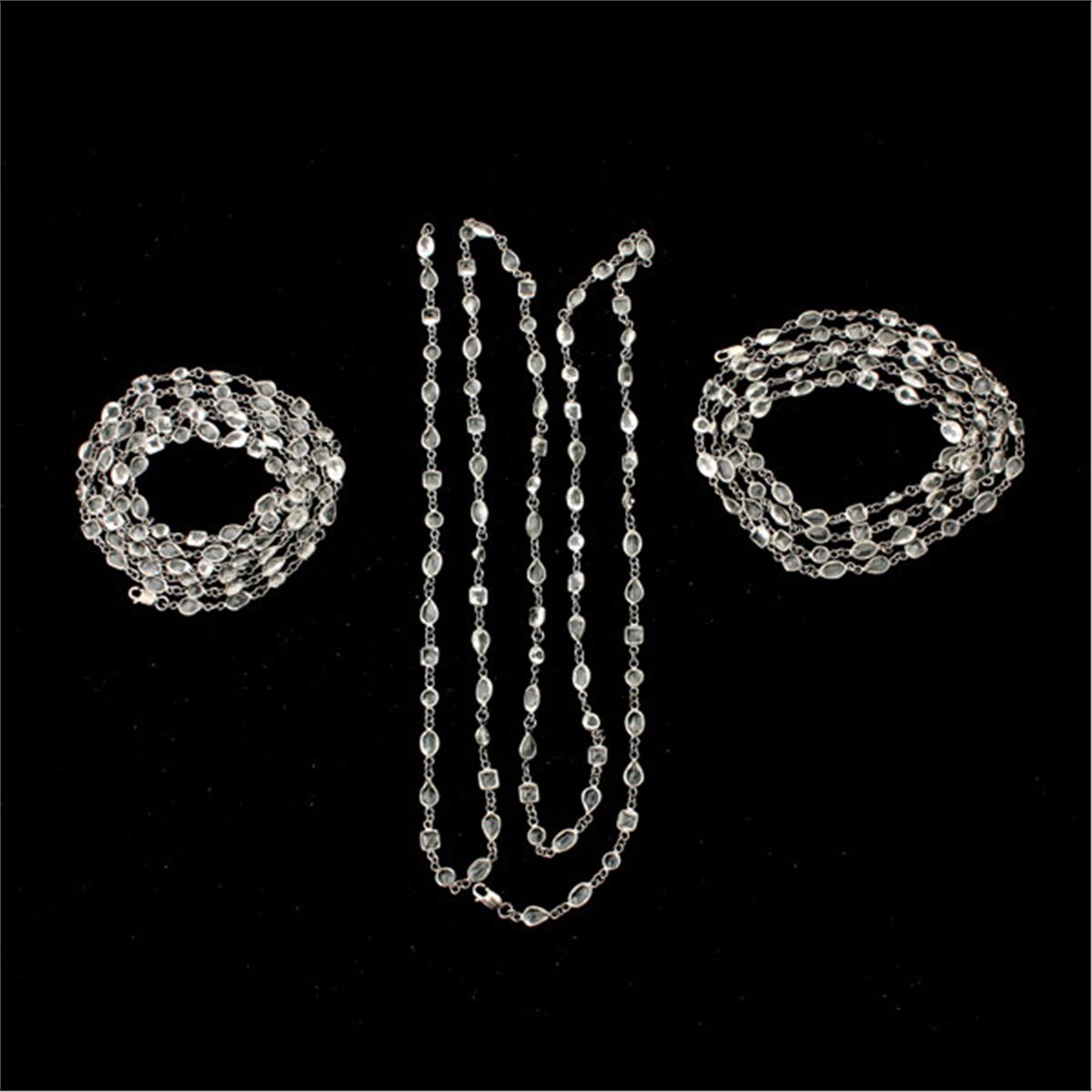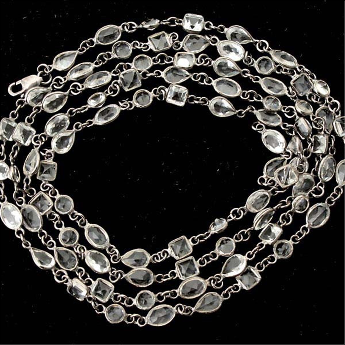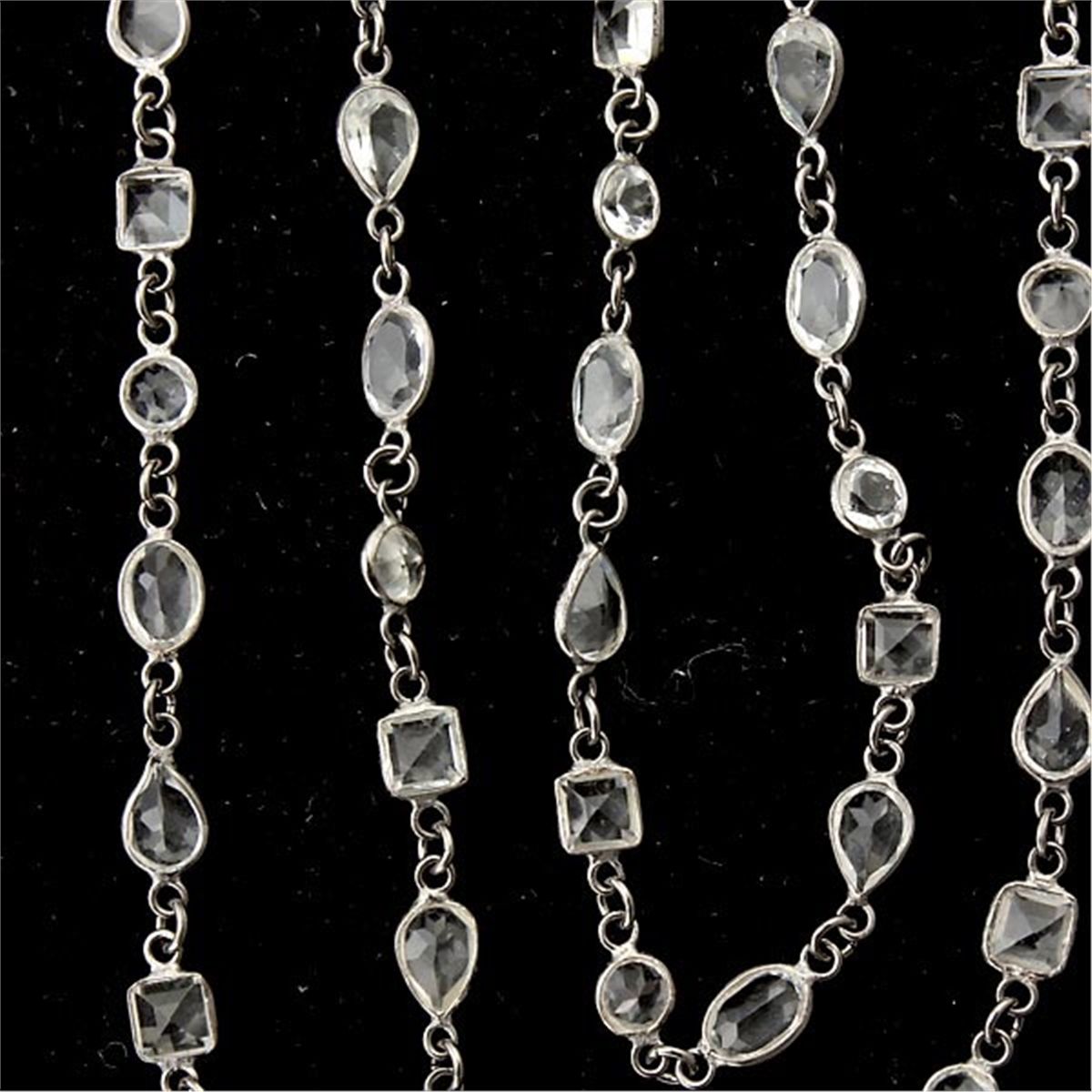 COLLECTION OF THREE ROCK CRYSTAL QUARTZ, STERLING SILVER NECKLACES. Each composed of several varying shaped rock crystal quartz including square and oval, round, pear-cut, each bezel set in blackened sterling silver links forming a 34 inch necklace.