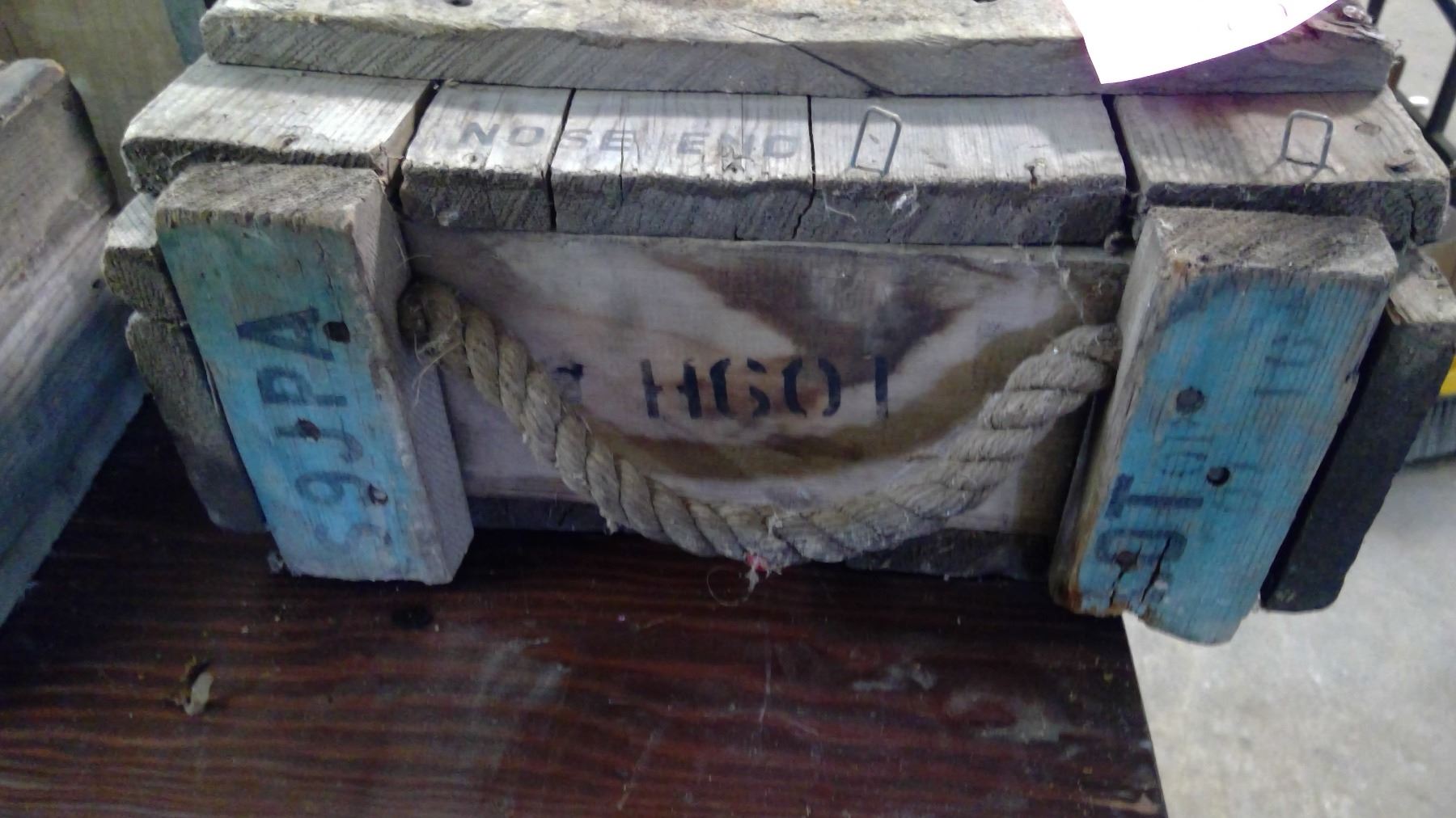 3 ROCKET - WOOD AMMO BOX 30"X14"X6" ROPE HANDLES