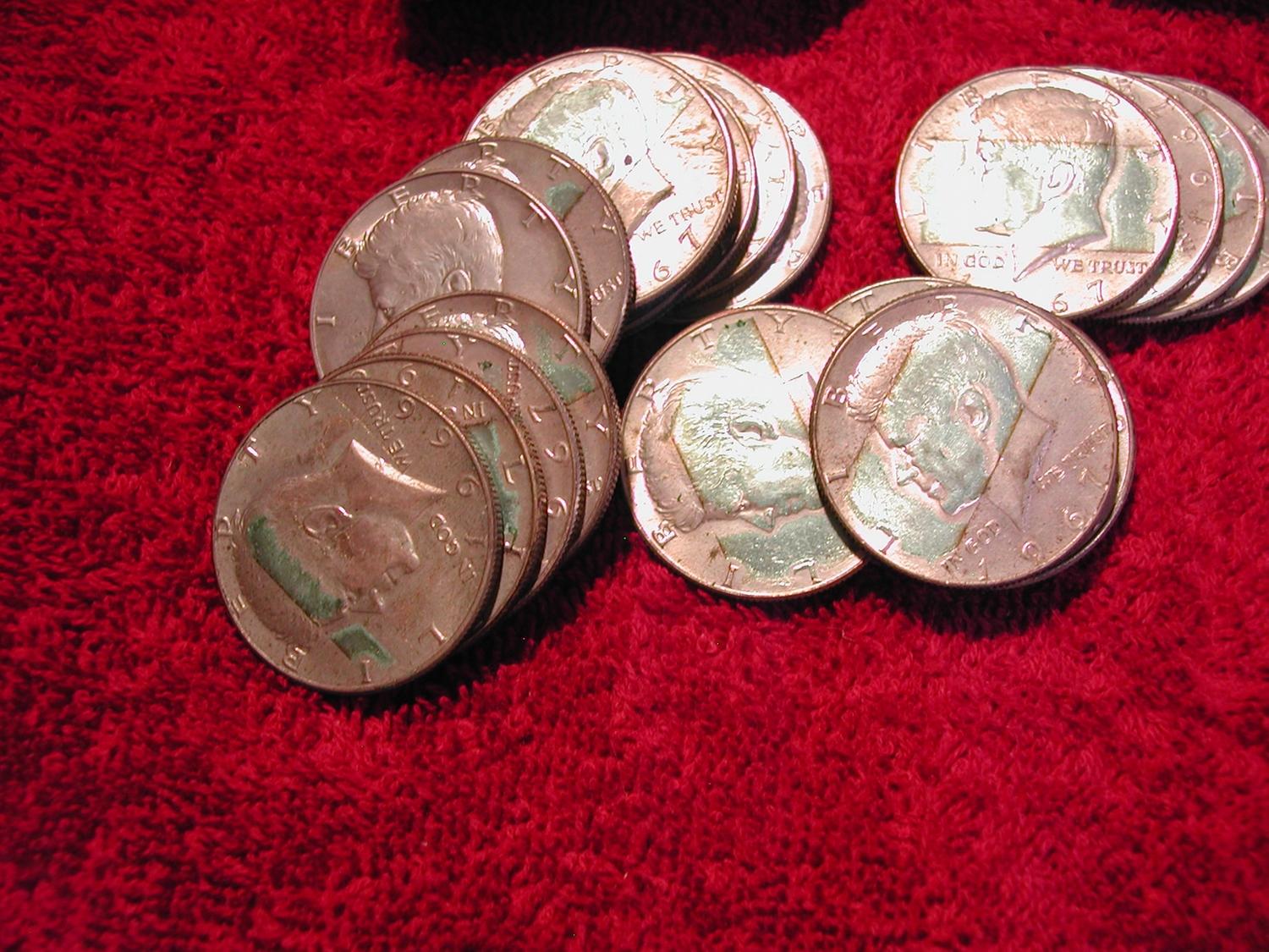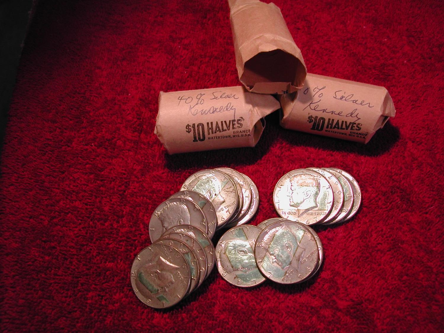 3 ROLLS KENNEDY HALFS (40% SILVER), 1 ROLL $9.50 VICE $10
