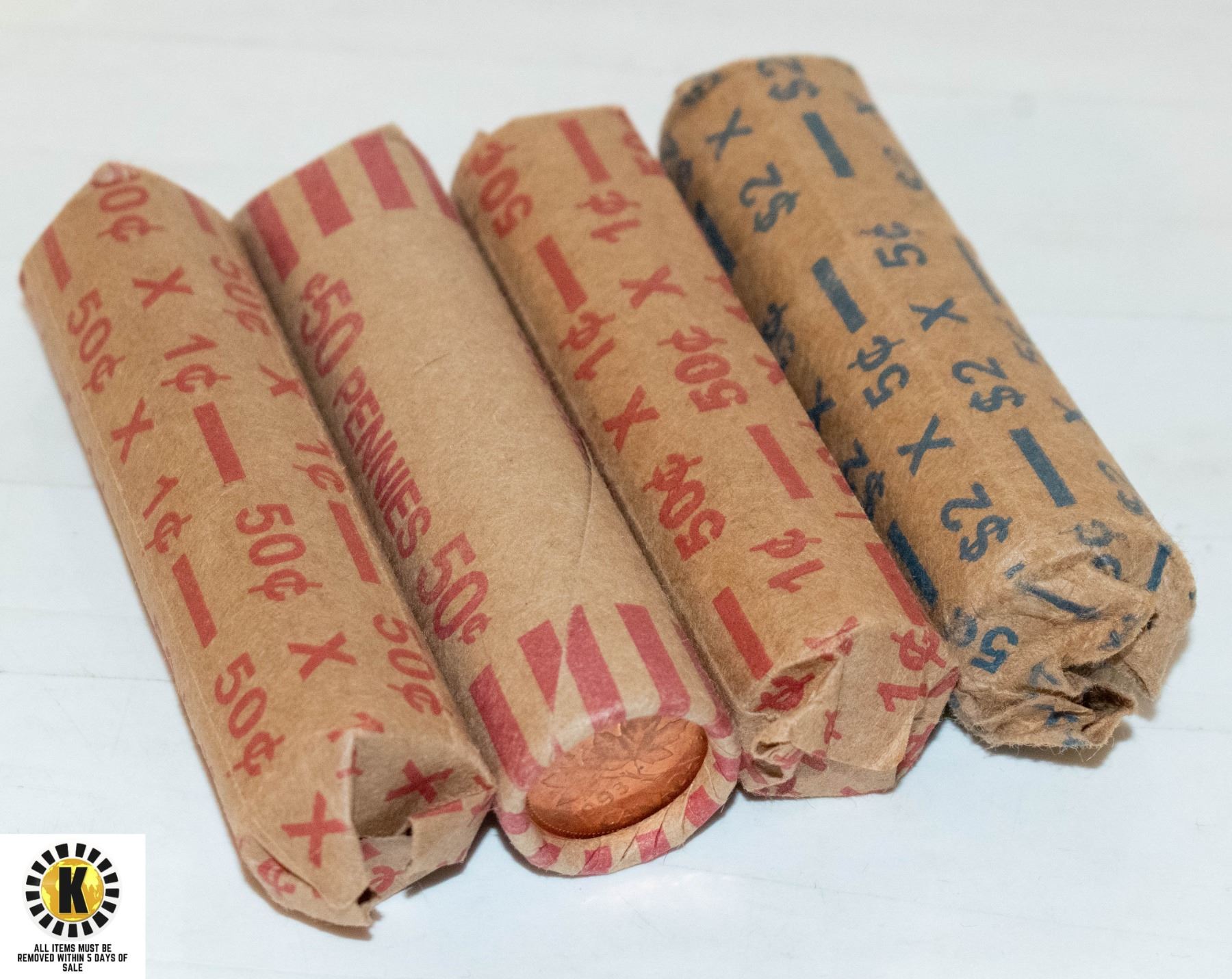 3 ROLLS OF UNSEARCHED PENNIES & 1 ROLL OF NICKLES