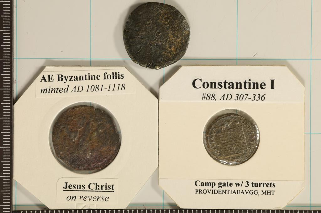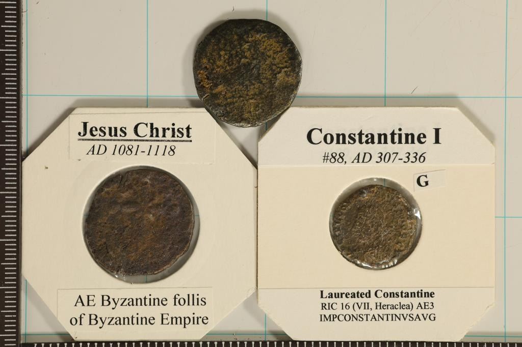 EMPIRE, 307-336 A.D. CONSTATINE I AND 1081-1118 A.D. BYZANTINE FOLLIS JESUS CHRIST