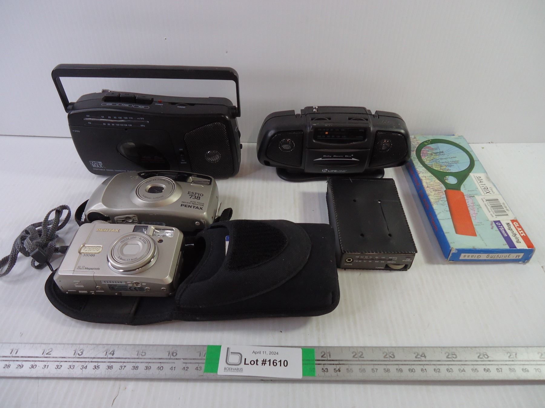 (3) Radios,(2) Cameras and Magnifying Glass-untested as is