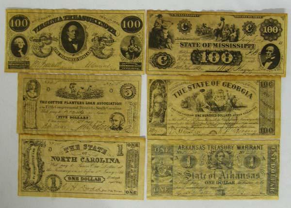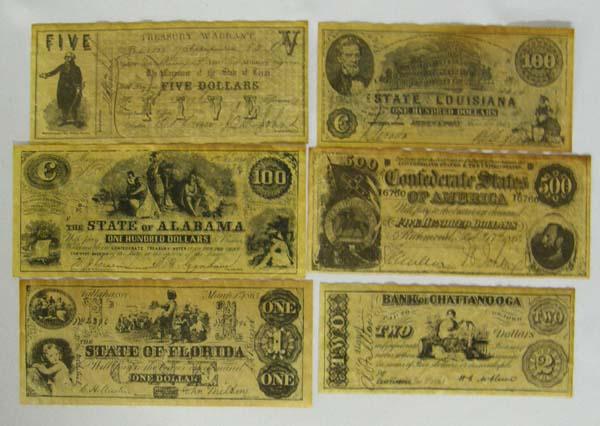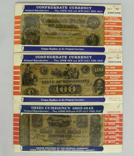 3 Reproduction Civil War Currencies. 2 Confederate Currency, set A and set B and 1 Ohio Currency 1803-1845. SHI $15.