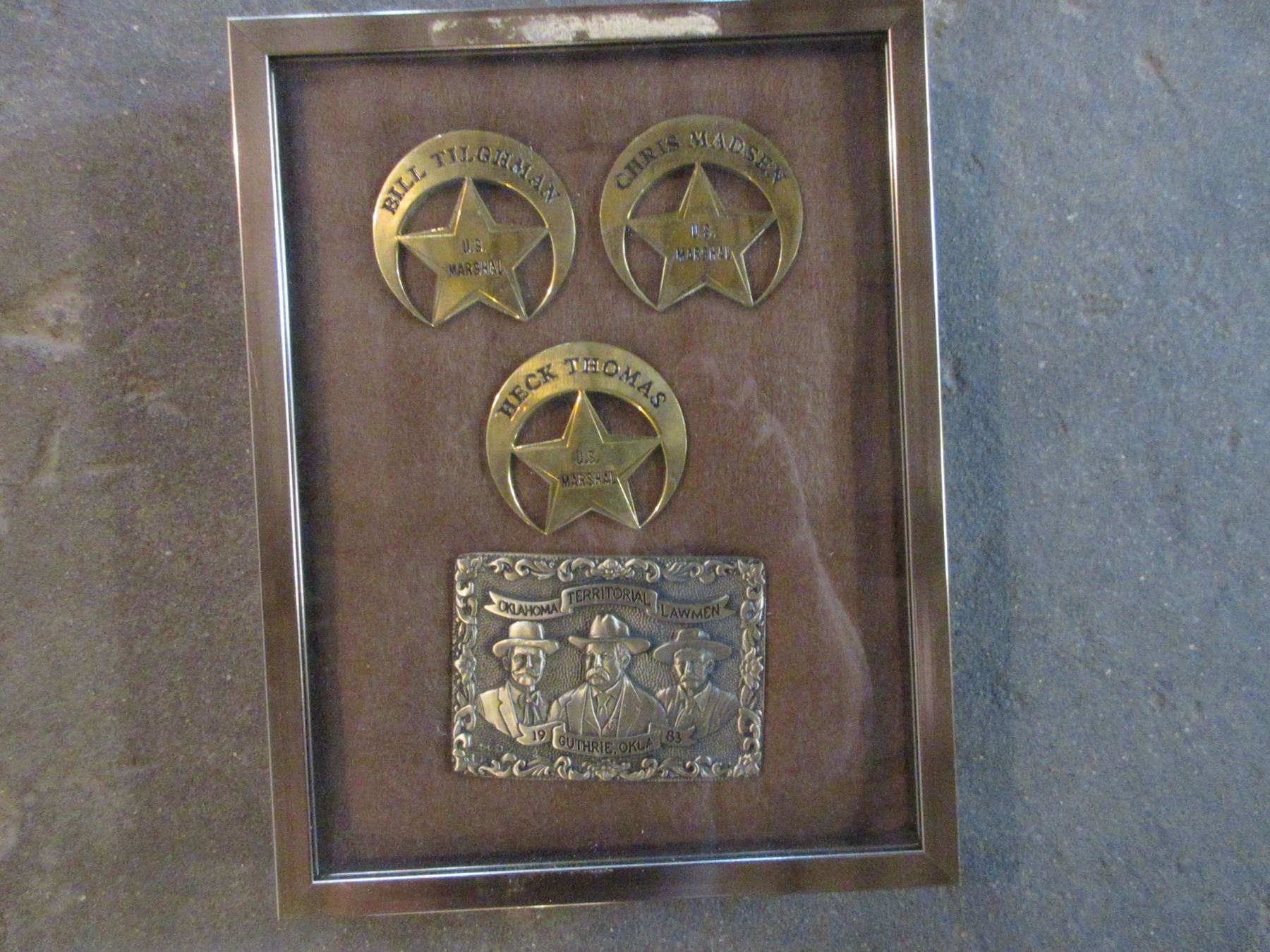 3 Reproduction US Marshall Badges- Oklahoma Lawmen Belt Buckle- 9" X 7"