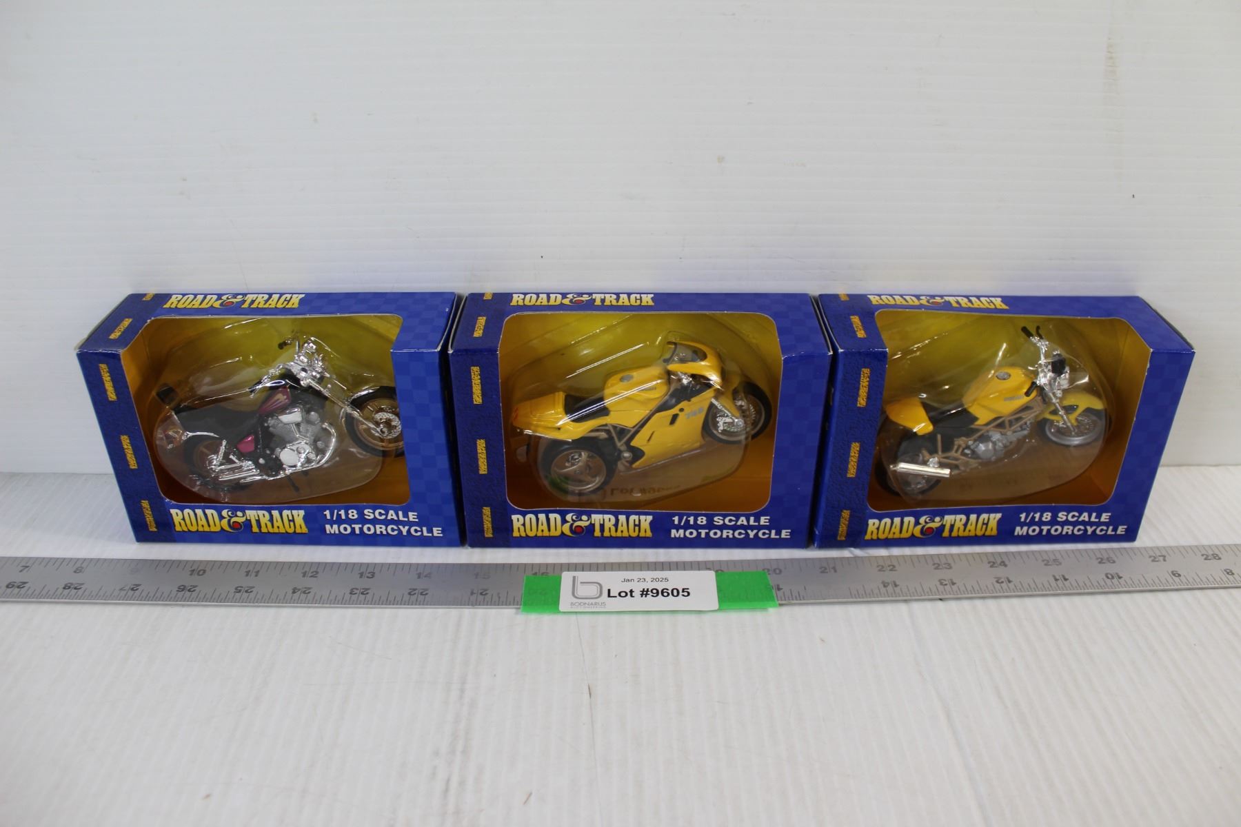 (3) Road Track 1/18 Die Cast Metal Motorcycles