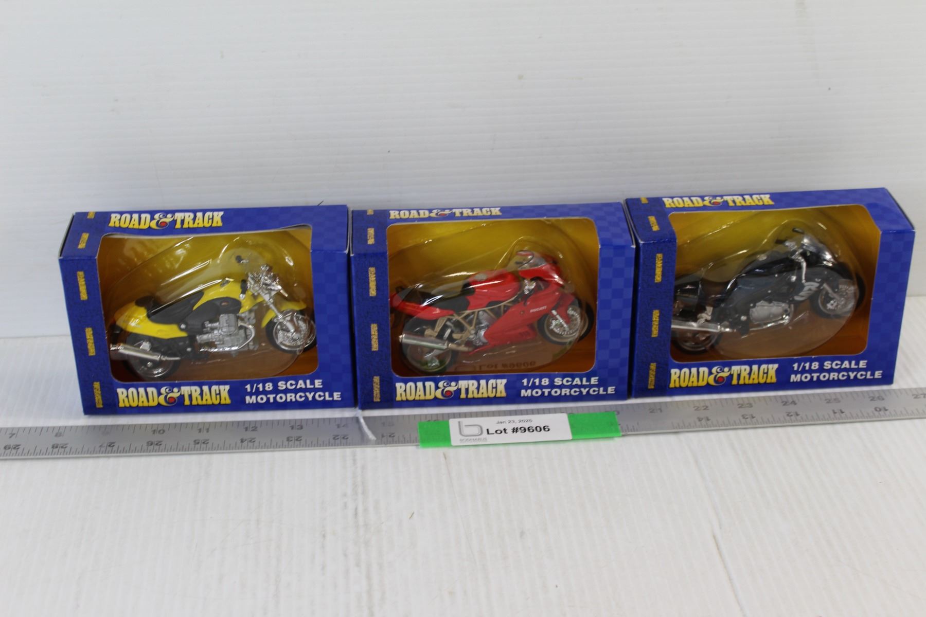 (3) Road Track 1/18 Die Cast Metal Motorcycles