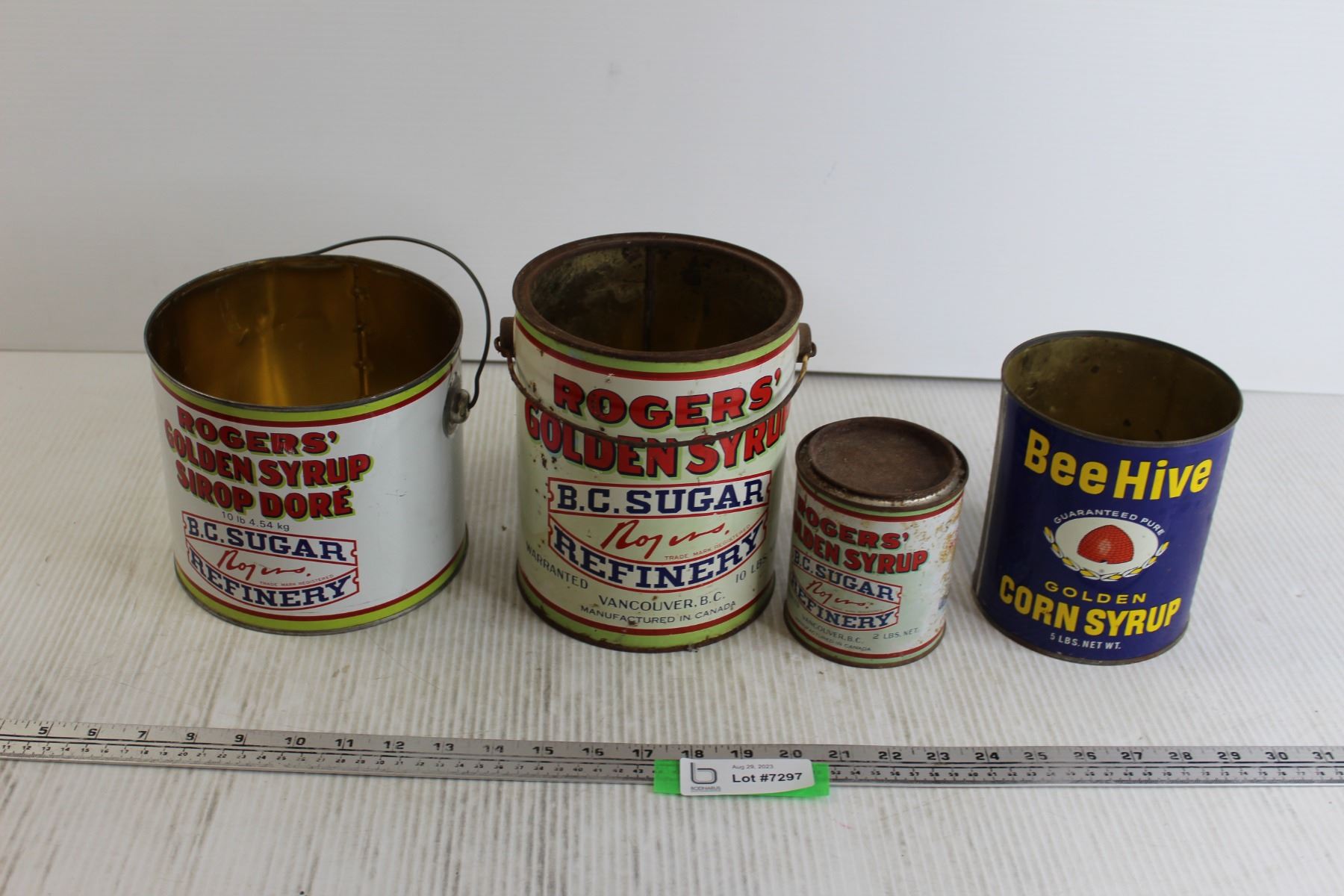 (3) Rogers' Golden Syrup Tin Cans, Beehive Golden Corn Syrup Tin Can