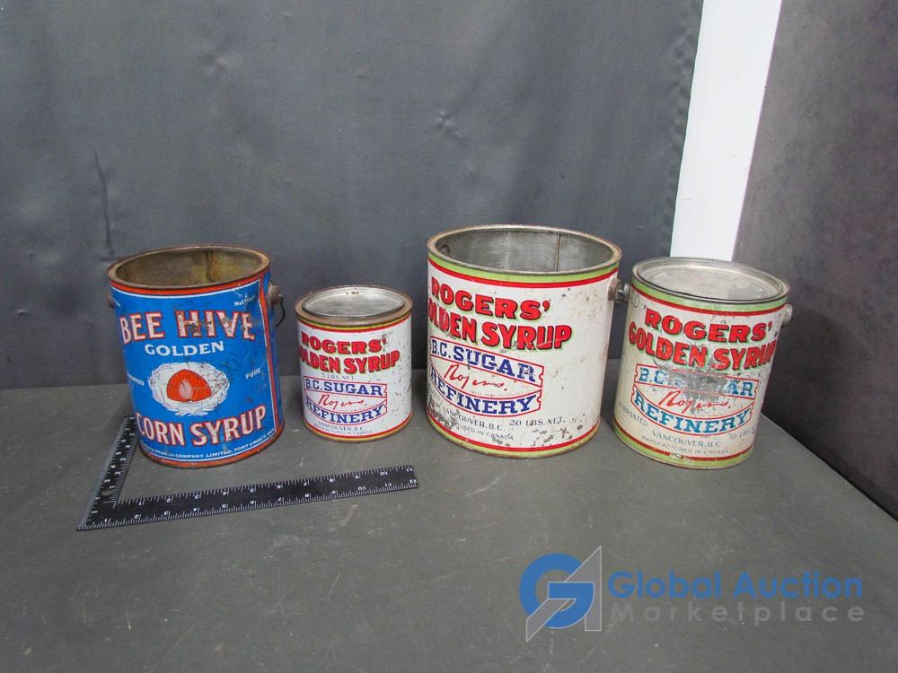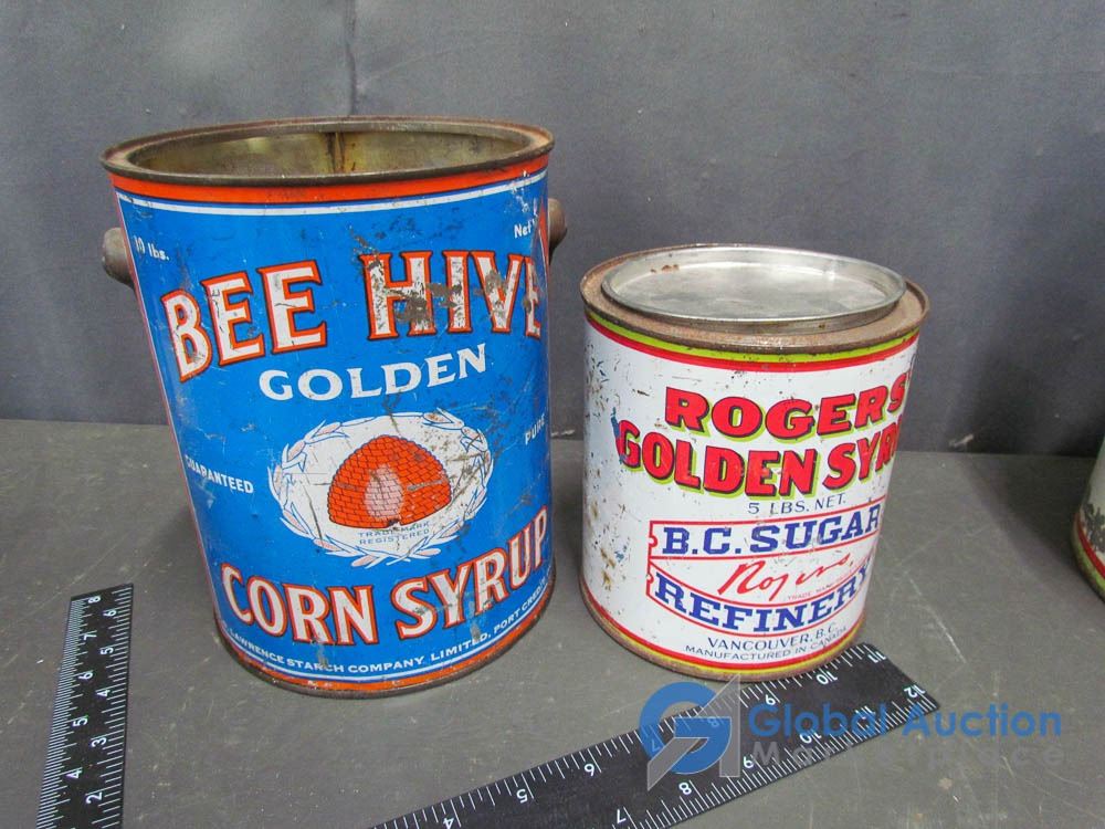 (3) Rogers Golden Syrup Tins and (1) Behive Corn Syrup Tins