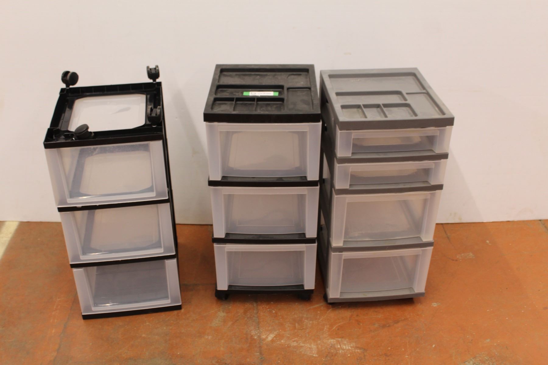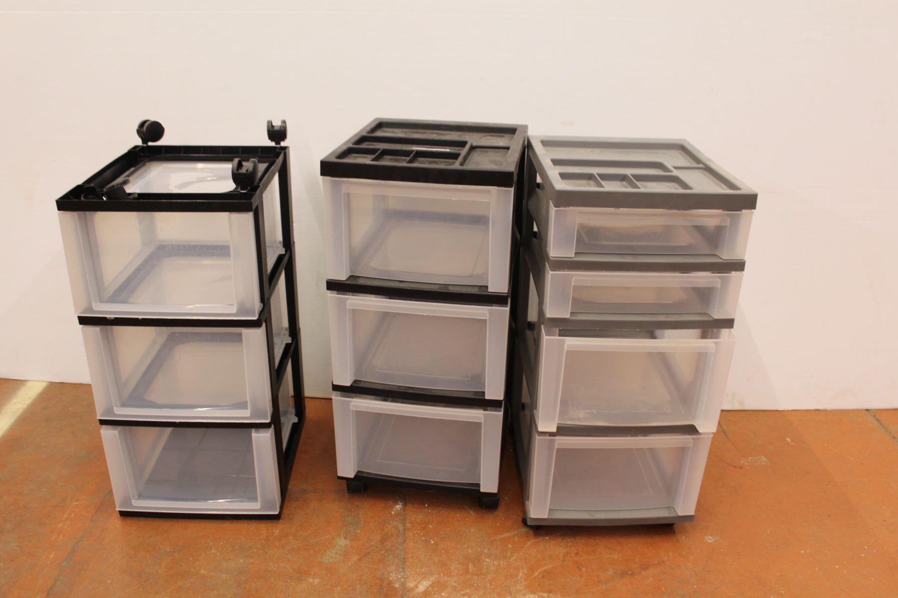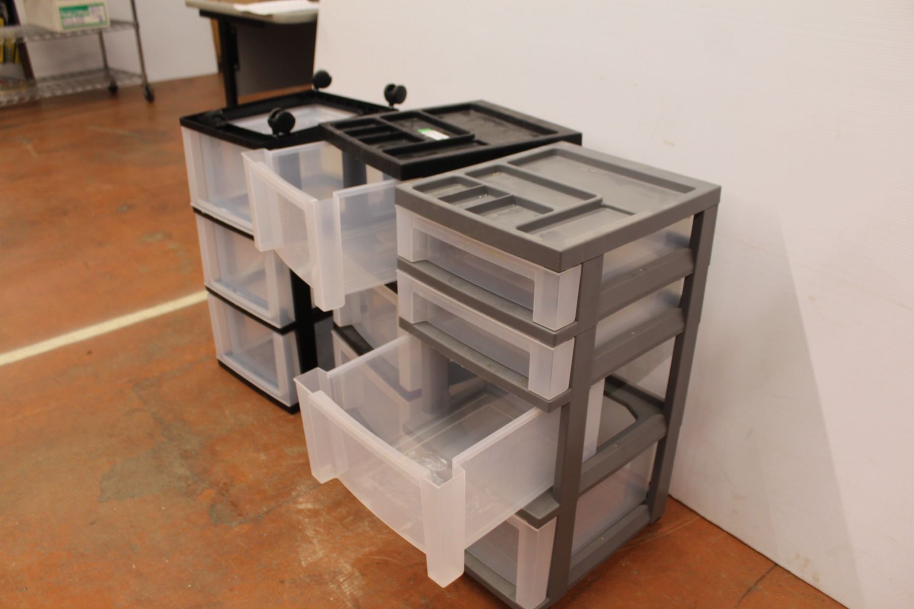 *(3) Rolling Plastic Storage Containers (one has a broken wheel)