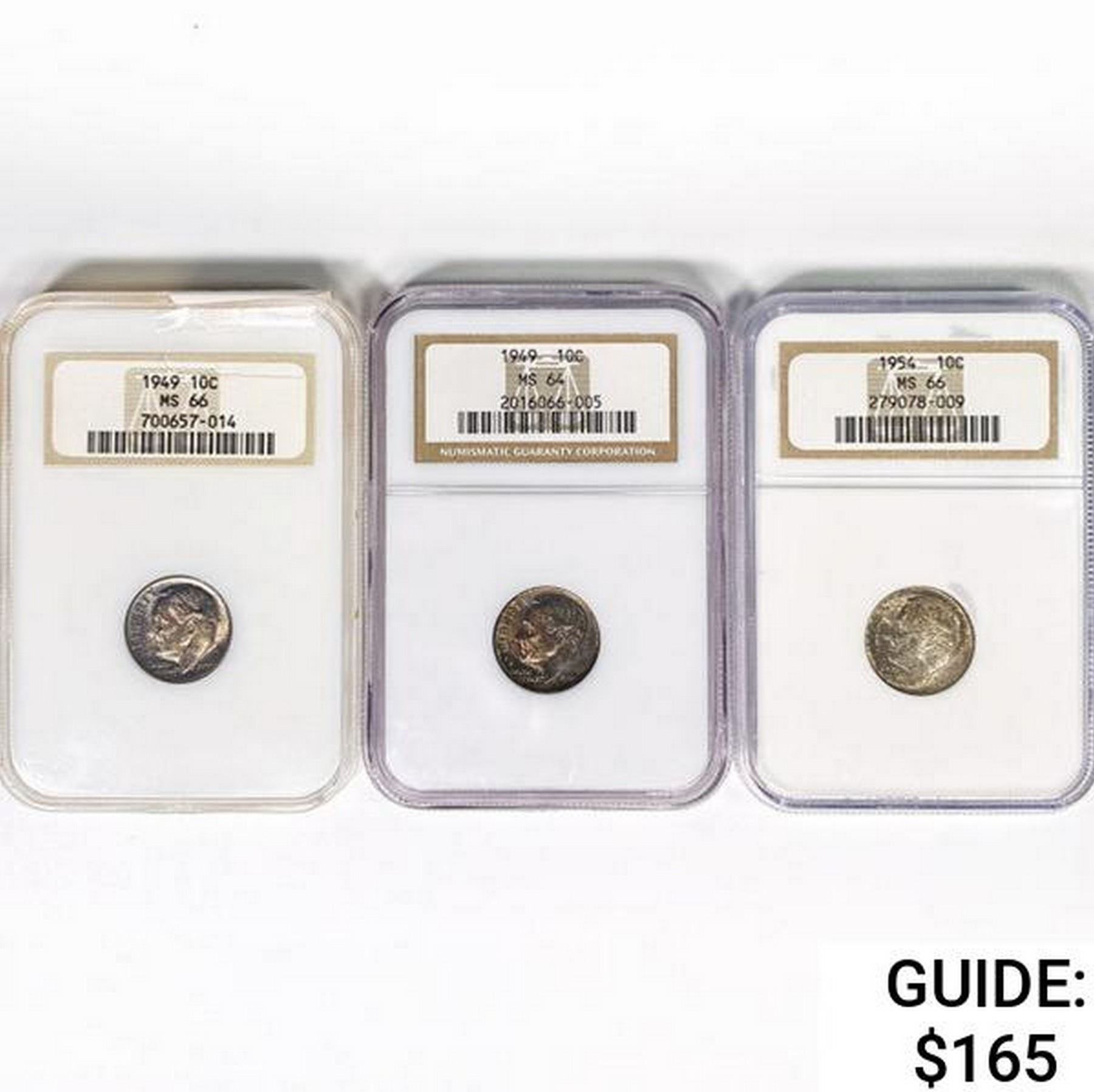[3] Roosevelt Dimes NGC MS 1949-1954