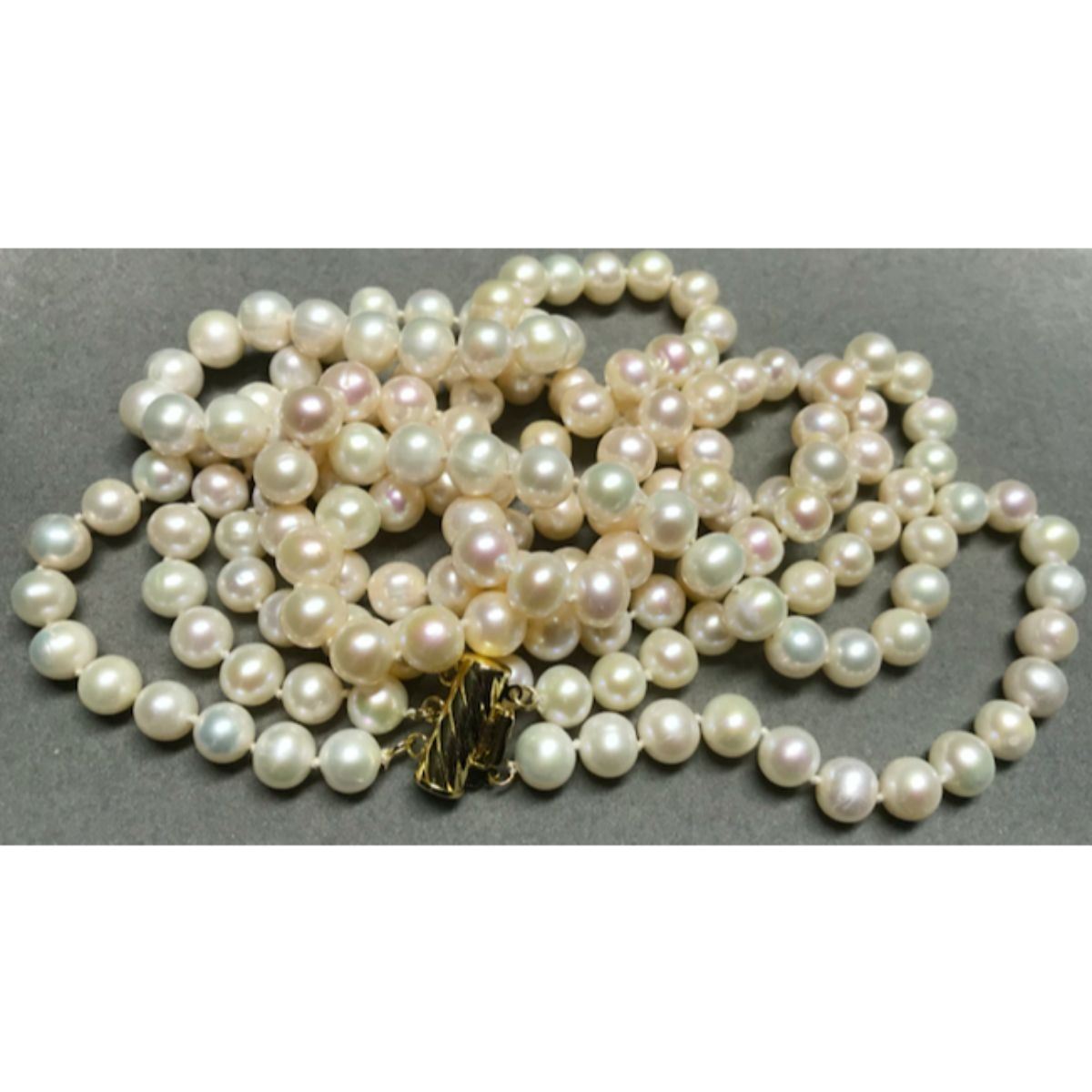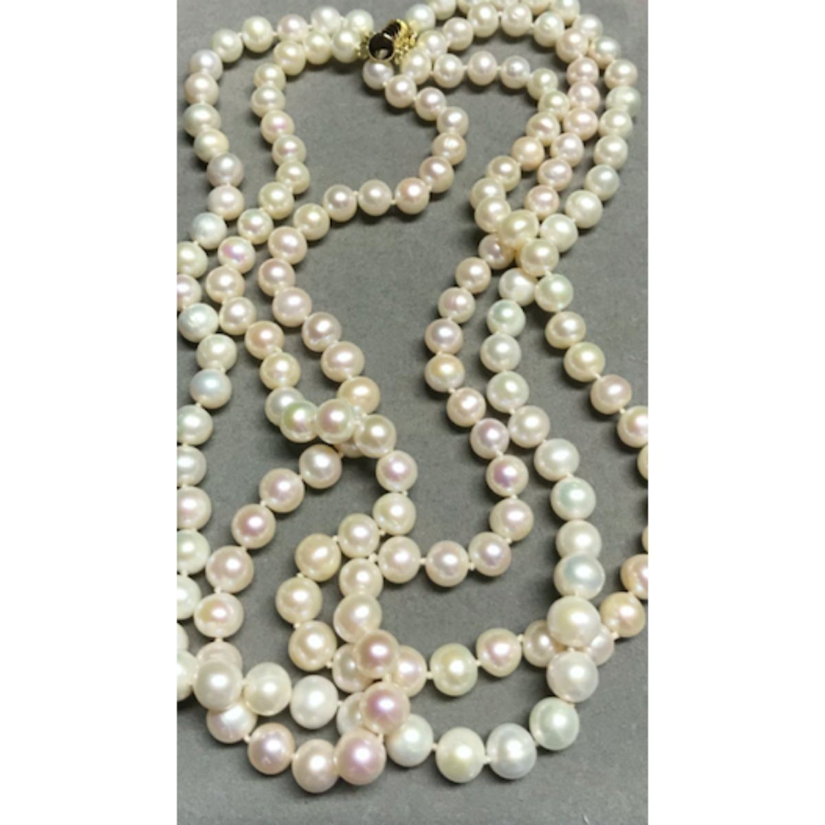 8-9mm Natural White Akoya pearls 3-row strand 18 - 19" necklace with 14kt yellow gold clasp.  - 10563-051518-EB-62557Â
