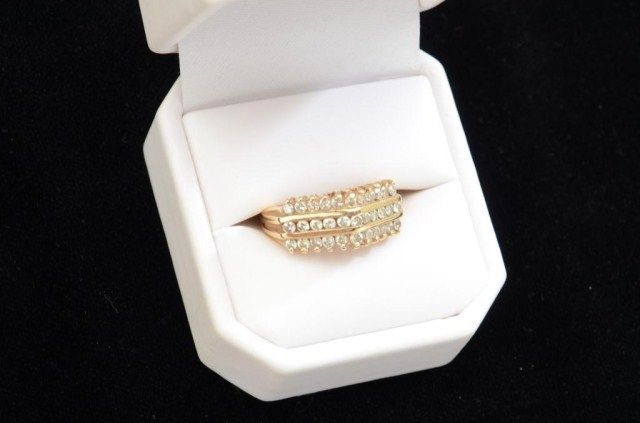 3 Rows of channel set diamonds est. 90 to 1.10 ct total in yellow 14K mount. Est.:$300-$600.