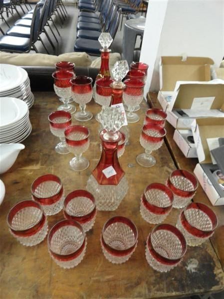 3 Ruby Flash Glass Decanter Set - 3 Times the Money - No Shipping