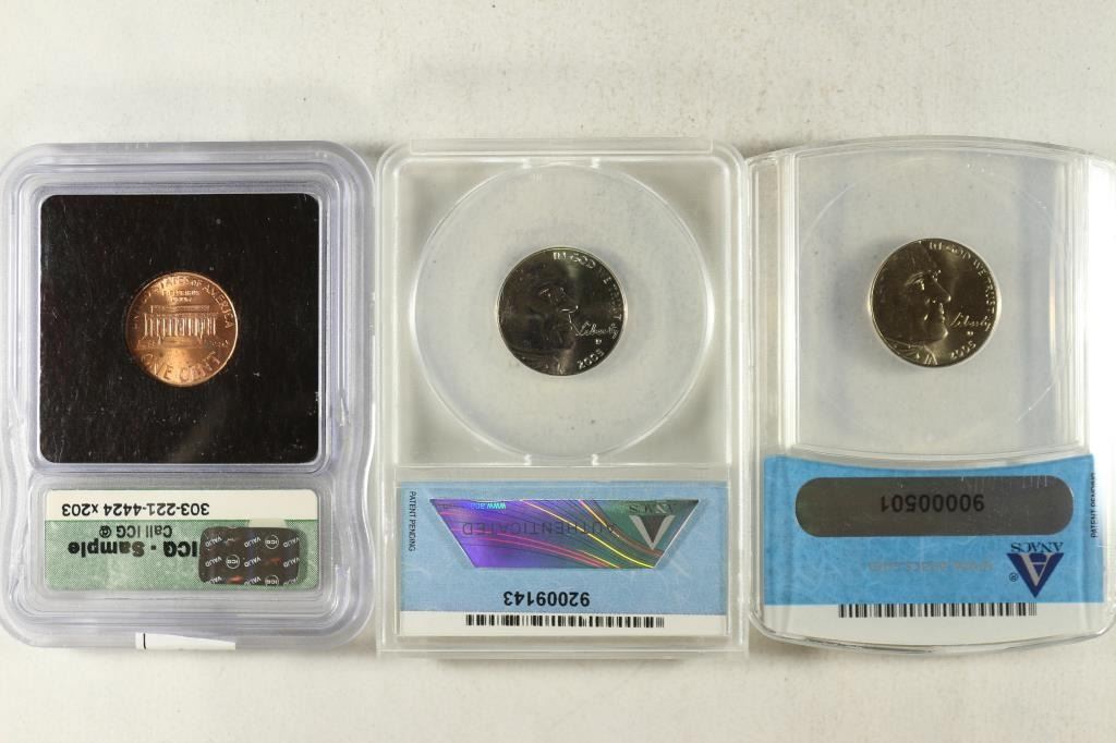 SHIELD ICG HOLDER AND 2-2005-D OCEAN IN VIEW NICKELS IN ANACS HOLDERS