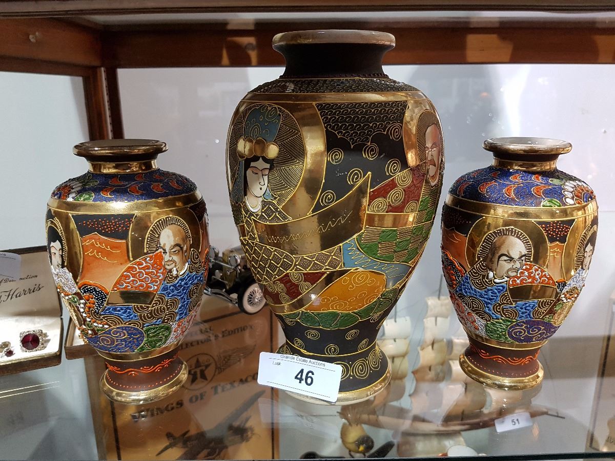 ONE OF THE SMALL VASES HAS A CHIP ON THE RIM