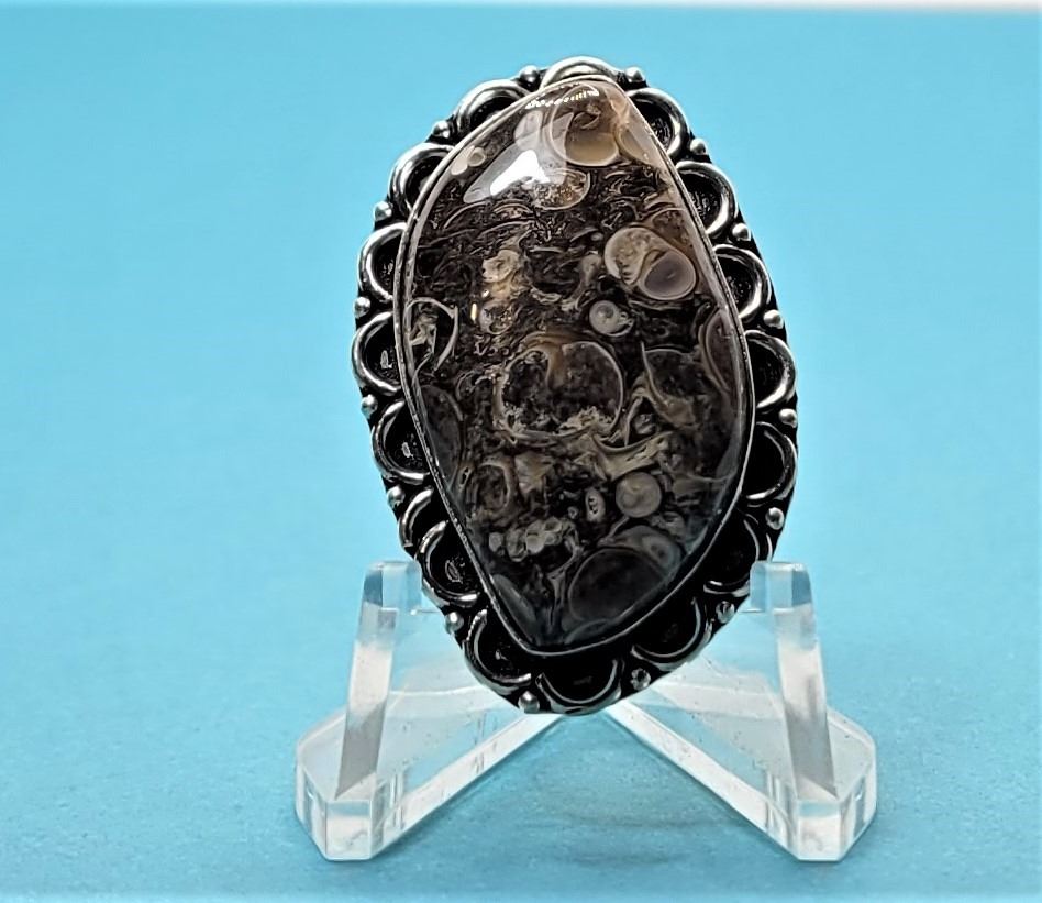 3) SCALLOPPED EDGE TURTELLA JASPER RING,