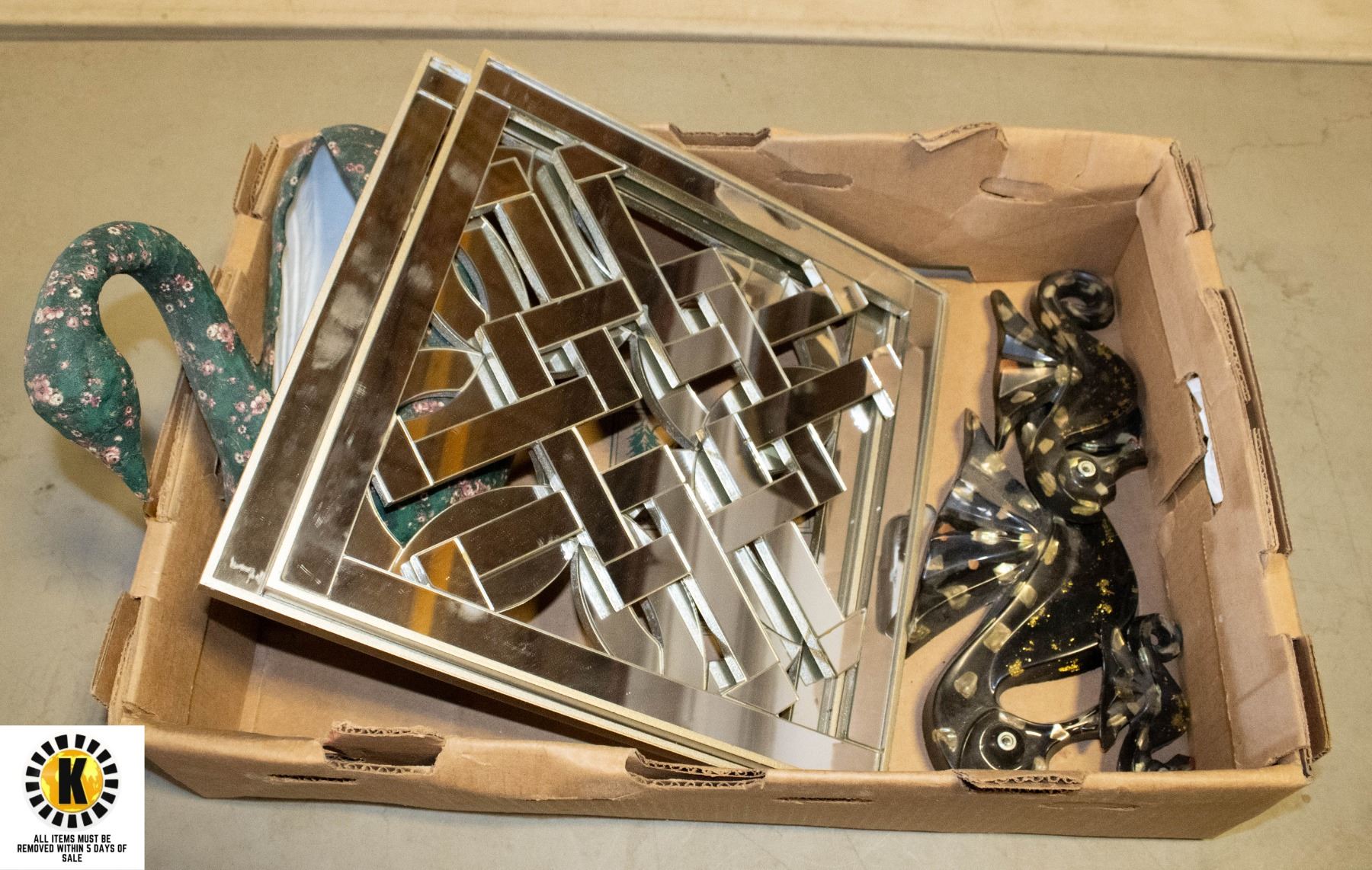 3 SEA HORSES, 2 DECORATIVE MIRRORS, GOOSE PLANTER