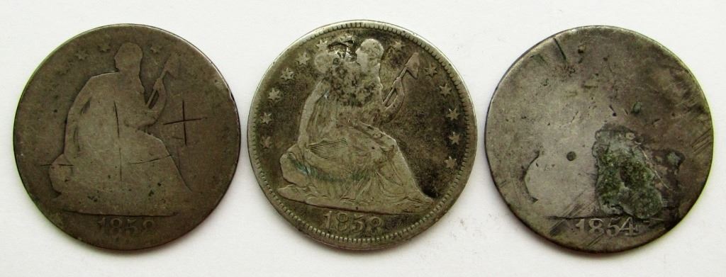 3-SEATED HALF DOLLARS; 1854, (2) 1858