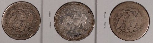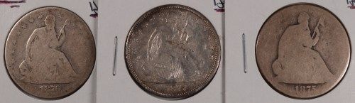 3 SEATED HALF DOLLARS (75,76-S,77) AG-GOOD