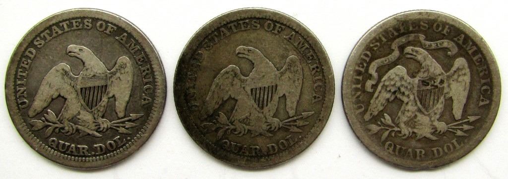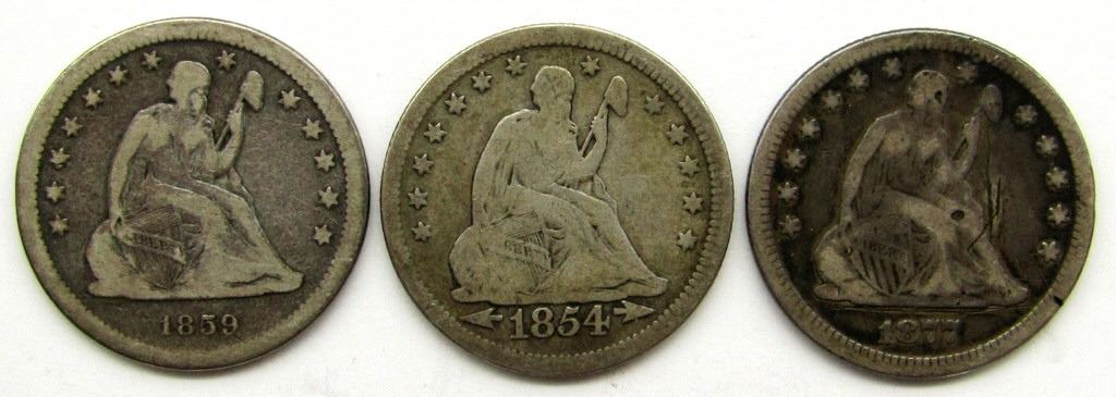 3-SEATED QUARTERS: 1859, 1877, 1854 ARROWS VG'S