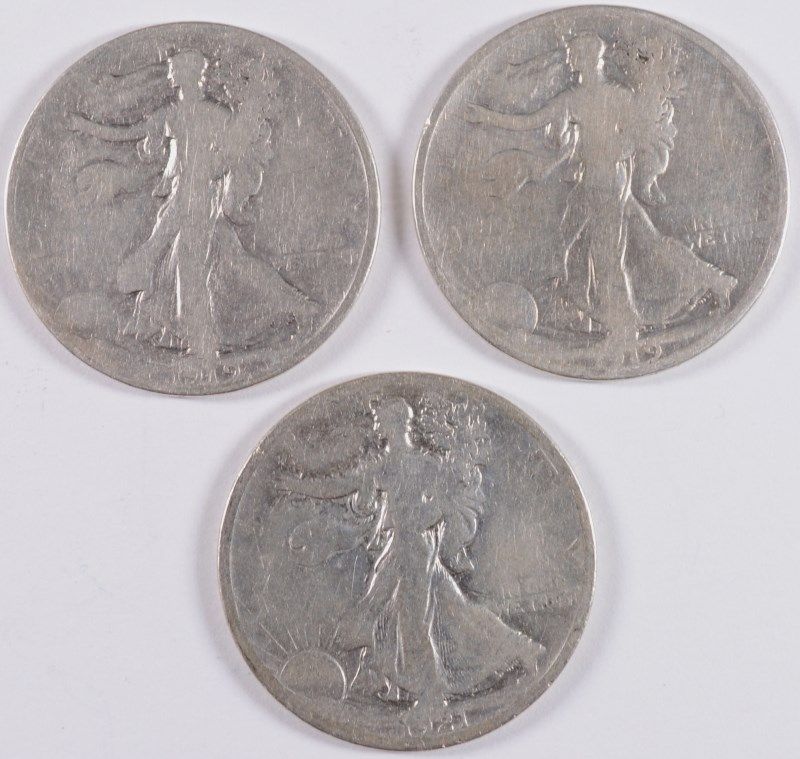 ( 3 ) SEMI-KEY DATE WALKING LIBERTY HALF DOLLARS- GOOD, 1919-D, 1919-S & 1921-S