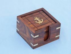3" SET OF 6 WOODEN ANCHOR COASTERS W/ROSEWOOD HOLDER **|**|** 3" SET OF 6 WOODEN ANCHOR COASTERS W/ROSEWOOD HOLDER