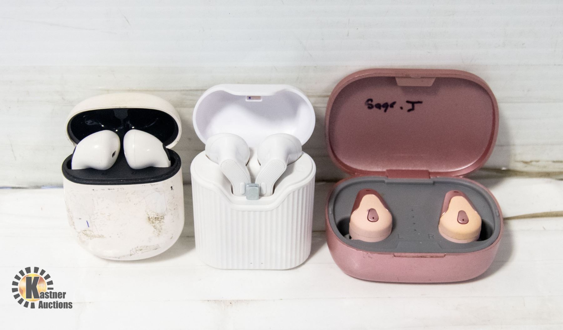 3 SETS OF IN EAR HEADPHONES WITH CHARGING CASES