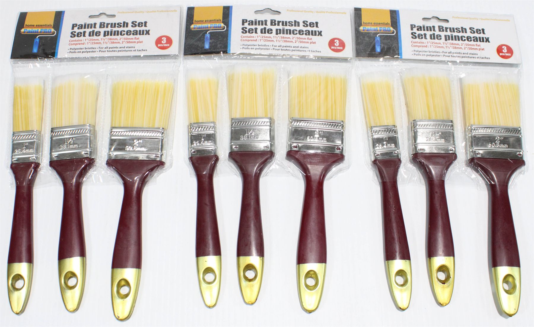 3 SETS OF PAINT BRUSHES, 3 PER SET