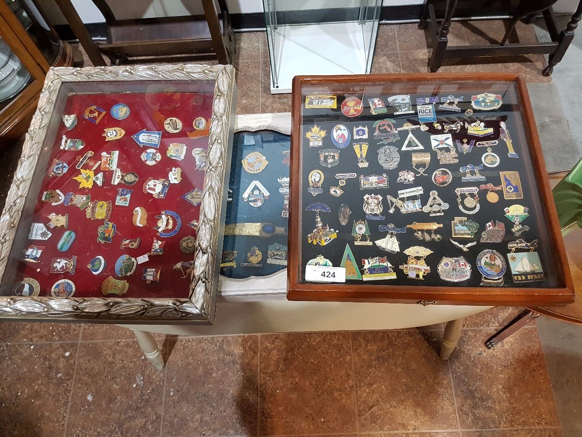 3 SHADOW BOXES OF COLLECTIBLE PINS