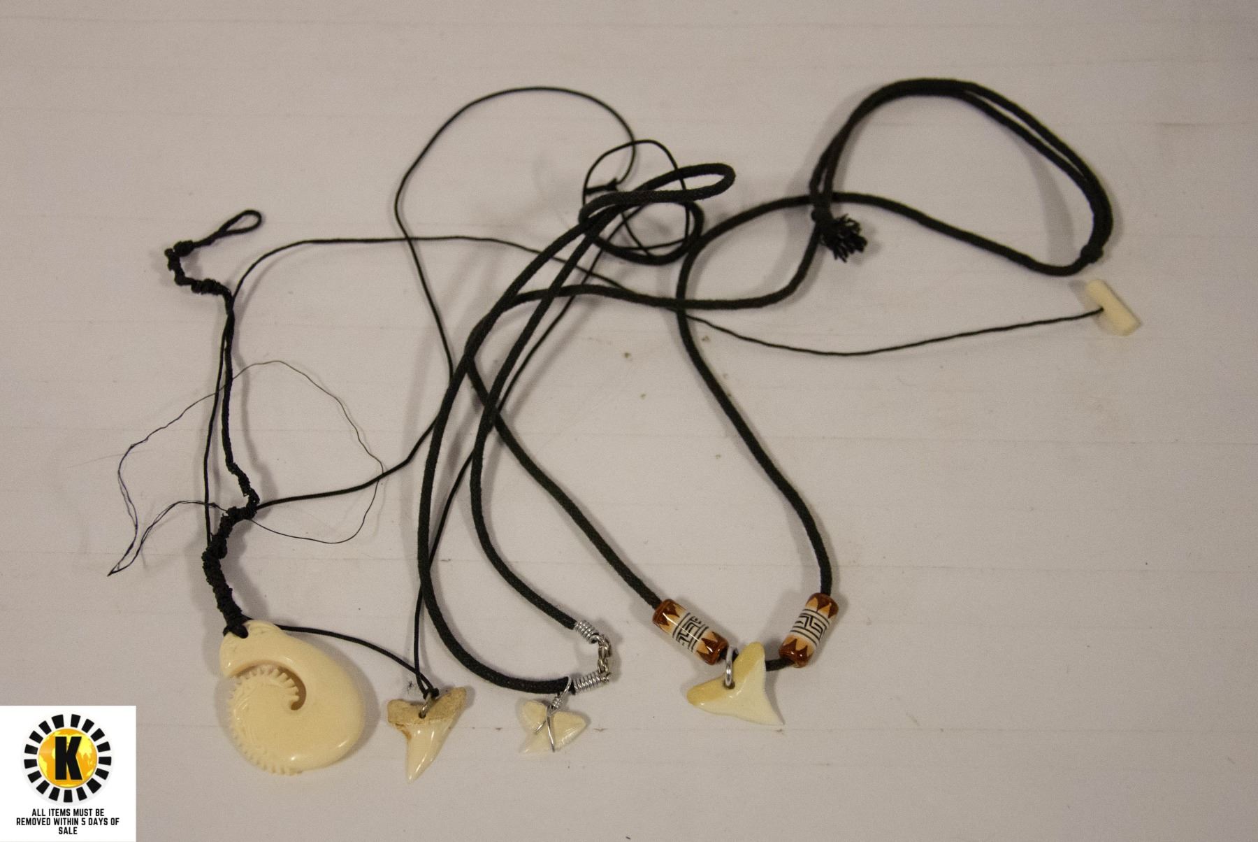 3 SHARK TEETH NECKLACES & SHARK BONE CARVED