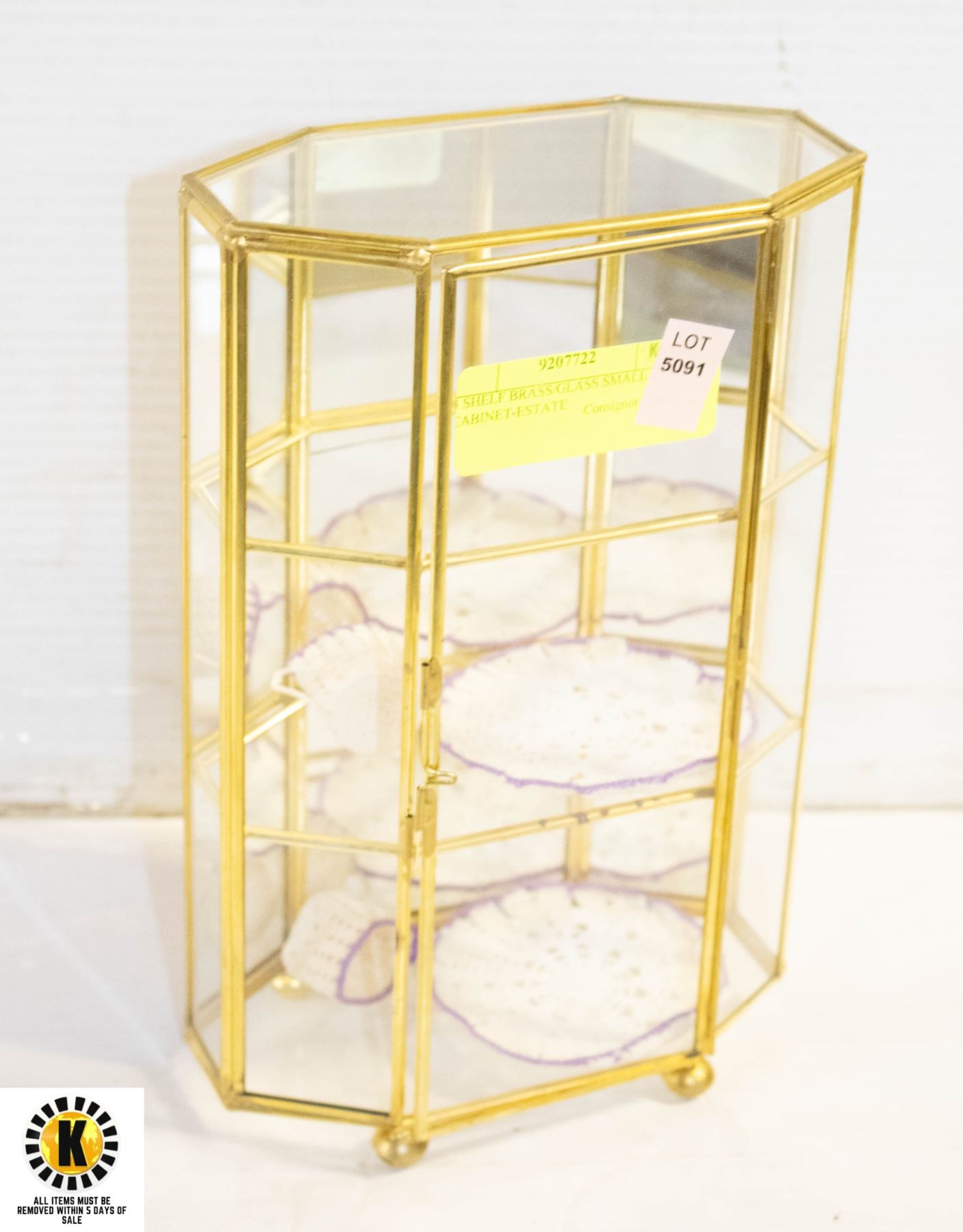 3 SHELF BRASS/GLASS SMALL CURIO CABINET-ESTATE