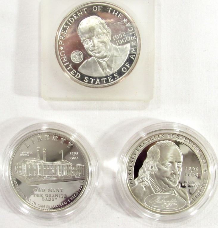3-SILVER PROOF COMMEM DOLLARS: 1990 EISENHOWER,