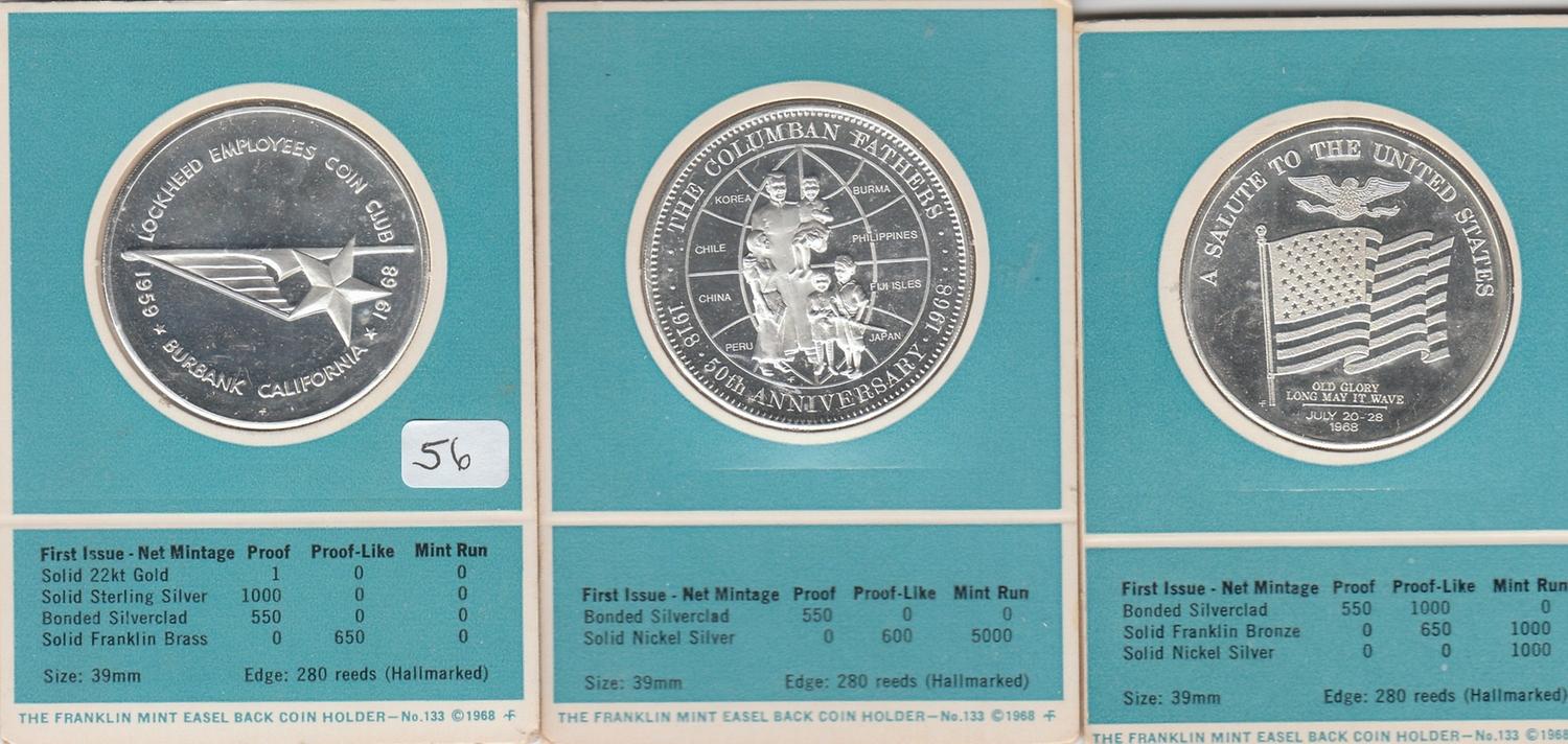3 SILVER ROUNDS COMMEMORATIVE CLAD VERY LOW MINTAGE