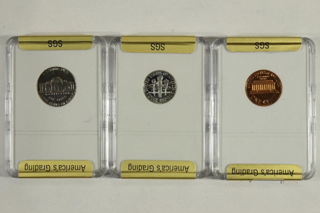 LINCOLN CENT, 1975-S JEFFERSON NICKEL AND 2002-S SILVER ROOSEVELT DIME, ALL PROOF