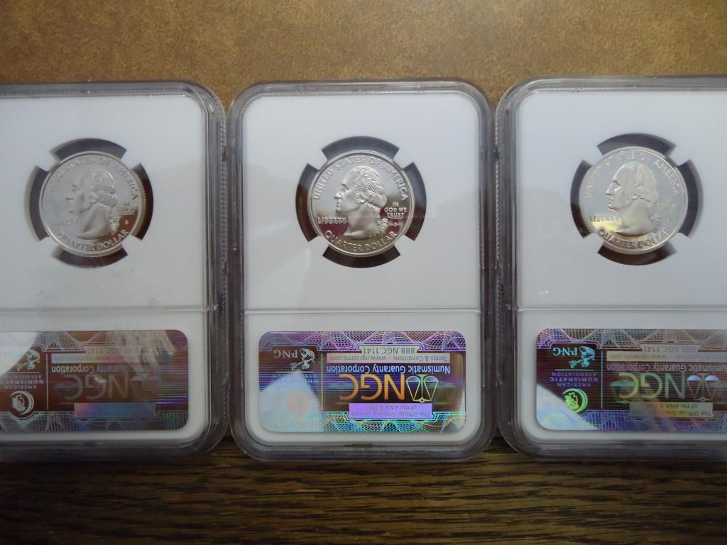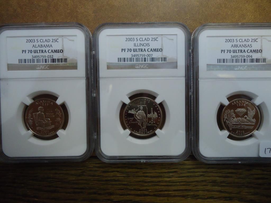 2003-S ARKANSAS QUARTER NGC PF70 ULTRA CAMEO, 2003-S ILLINOIS QUARTER NGC PF70 ULTRA CAMEO AND 2003-S ALABAMA QUARTER NGC PF70 ULTRA CAMEO