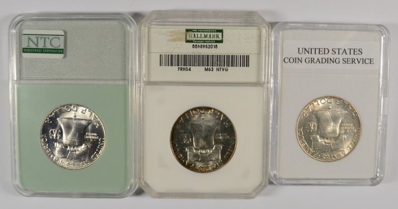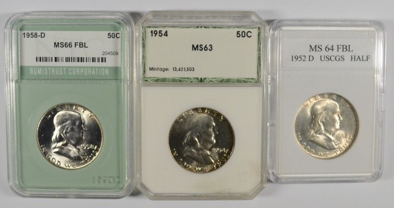 (3) SLABBED FRANKLIN HALF DOLLARS (52-D, 54, 58-D)